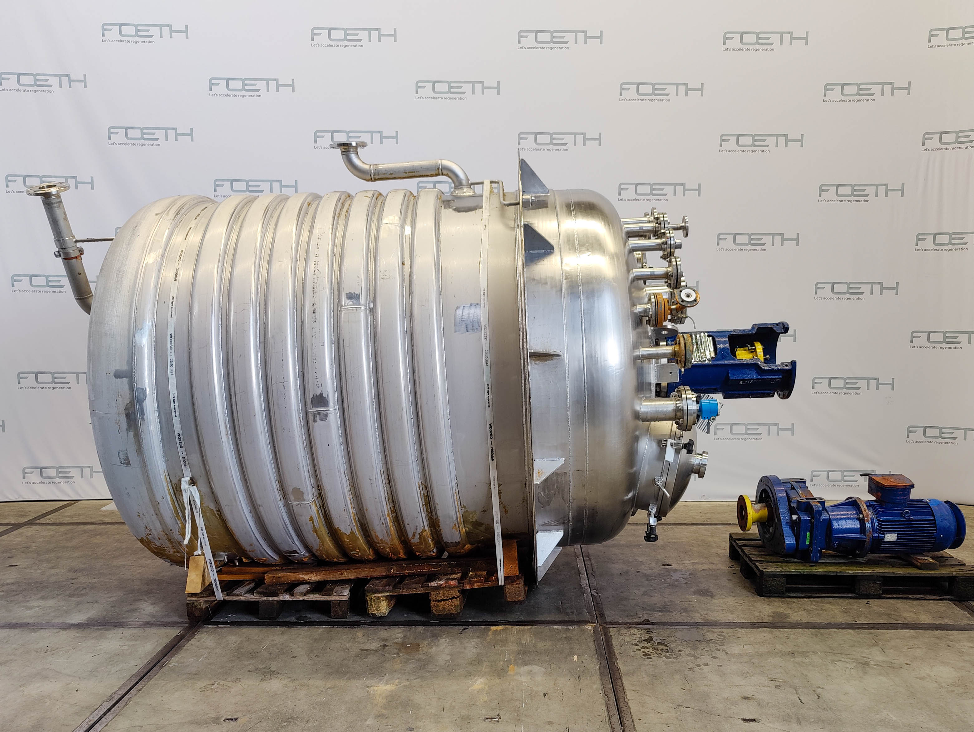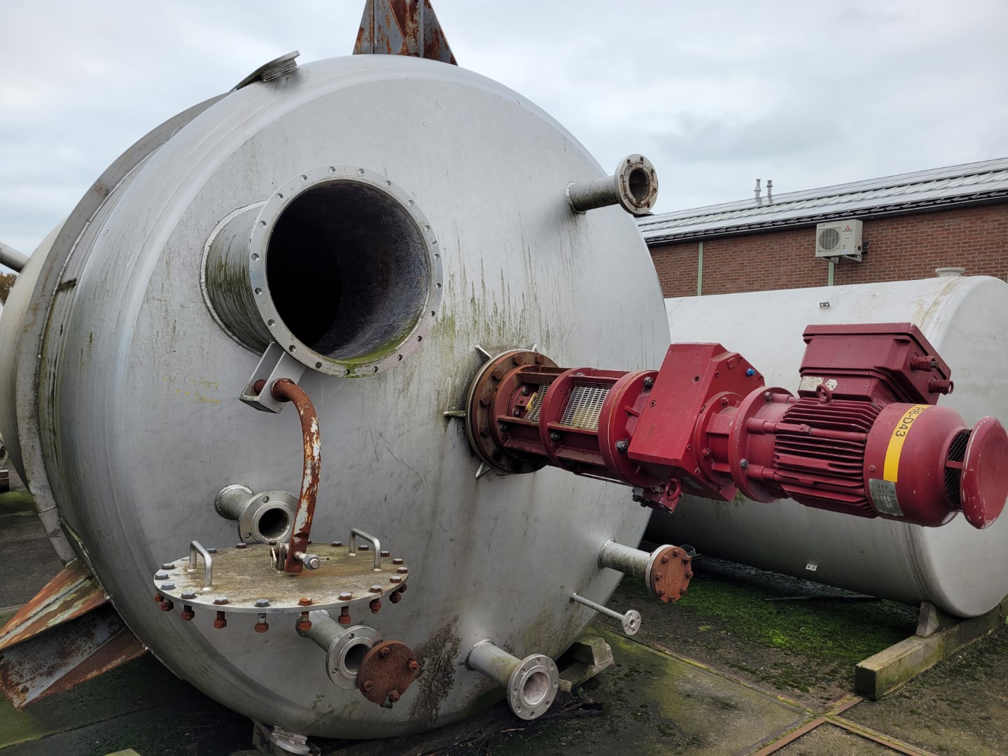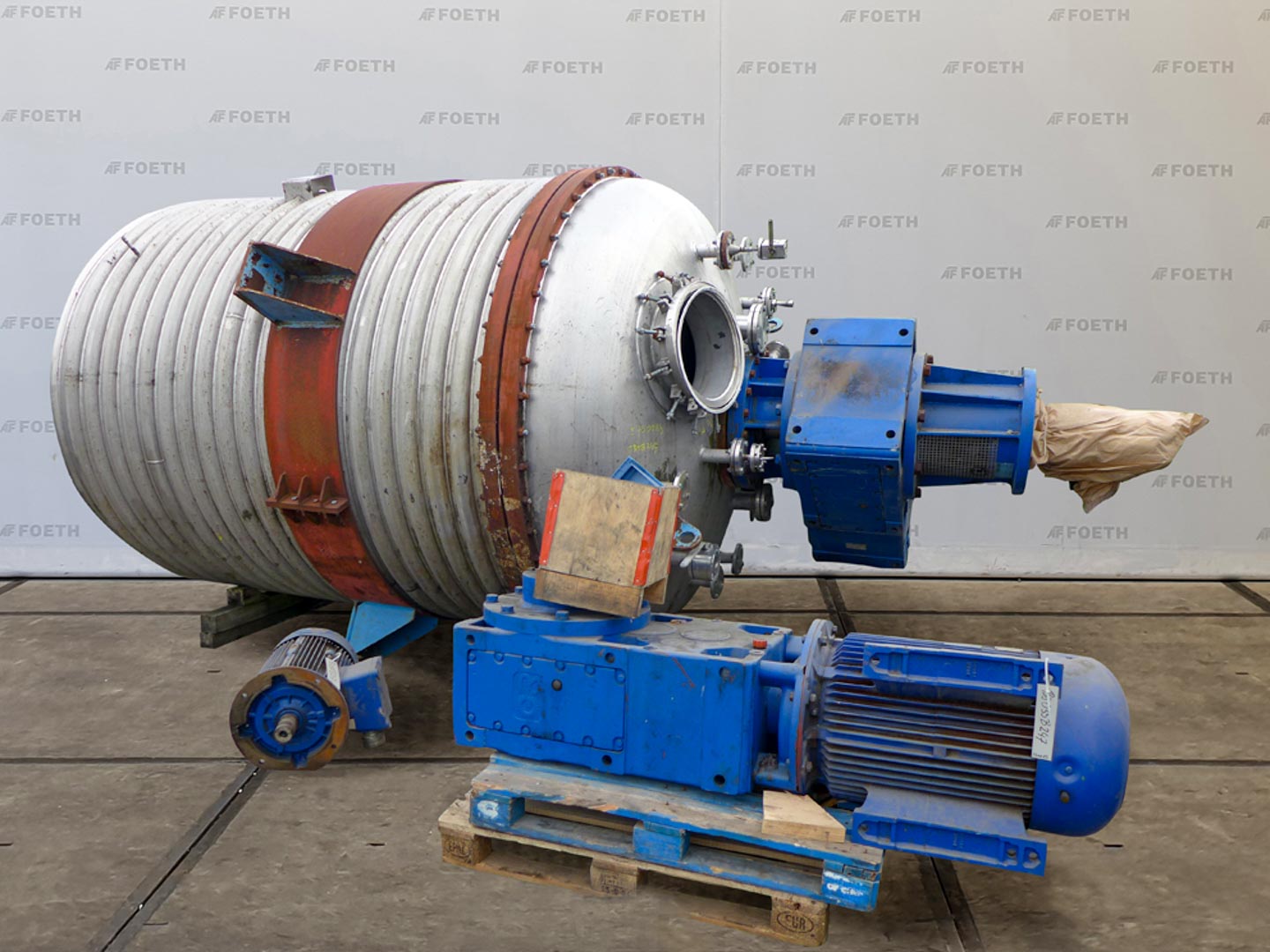General SKUR0906 MakeWalter Stöcklin AG (CH) Type6300 ltr. LocationBarneveld Pressure Working pressure3.2 Bar Vacuum possiblecheck Working pressure jacket16 Bar Main Features MaterialStainless steel Volume6300 Ltr. Motor11.2 KW Specified Features - Stainless Steel Reactor Reactorcheck Capacity8500 ltr ( nett 6300 ltr. ) Vessel sizesdia. 2000x3050mm Dished bottomcheck Dished top sidecheck Manholedia. 600mm Top connectionsDN150 (5x), DN250 (2x) Outletdia. 125mm Half coil jacketed(280 Ltr) Max. temperature-30/200 degr.C. With paddle stirrerEkato EM100-D Motor3,07/11,2 kW, 380 Volt, (EX) Speed mixing shaft6.9-69 rpm Stainless Steel Reactors MaterialStainless steel 1.4435 (316L) Information No.1330 Year of construction1985 Floorspace2,4x2,4 M Total height4,9 M Weight4500 Kg ATEX compatiblecheckStainless Steel ReactorsCatalysts & fillersSolventsDetergent & ...