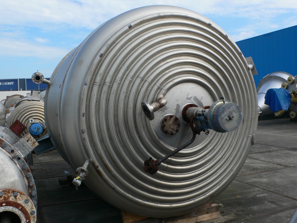 General SKU079G409 MakeChaudronnerie Tuyauterie Rhone-Alsace Feyzin No.845 Year of construction1996 LocationBarneveld Pressure Working pressure6 Bar Working pressure jacket6 Bar Main Features MaterialStainless steel Volume11000 Ltr. Motor15 KW Specified Features - Stainless Steel Reactor MaterialStainless steel 1.4539 (904L) Stainless Steel Reactors Reactor(1x) Capacity11.000 Ltr Vessel sizesdia. 2400x1500mm Conical bottom(1500mm) Dished top sidecheck Manholedia. 500mm Top connections3x dia. 250mm Outletdia. 150mm Half coil jacketed(335 Ltr), Half coil in Duplex (1.4462) Max. temperature160 Degr. C. With paddle stirrercheck Motor15,0 KW, 220/380 Volt (Ex) Speed mixing shaftvariable Information Floorspace2,7x2,7 M Total height5,5 MStainless Steel ReactorsCatalysts & fillersSolventsDiscountDetergent & surf.Other pharmaceuticsCosmeticsOrganicsLubricants & ole ...