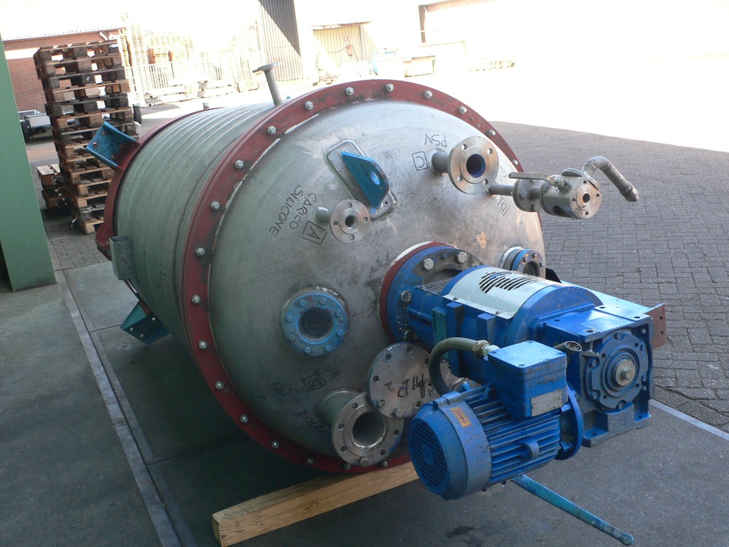 General SKUR0811 MakeCMR Brevetti Ravinet (Ita) LocationBarneveld Type2500 ltr Pressure Working pressure3.2 Bar Vacuum possiblecheck Working pressure jacket16 Bar Main Features MaterialStainless steel Volume2500 Ltr. Motor3.6 KW Specified Features - Stainless Steel Reactor Reactorcheck Capacity3610 ltr (nett. 2500 ltr) Vessel sizesdia.1600mm x 2170mm Dished bottomcheck Dished top sidecheck ManholeDN500 Top connections3x DN200, 4x DN100, OutletDN100 Half coil jacketed(140 ltr( Max. temperature-30/200 degr.C With propellor stirrercheck Motor3.6 kW, 380 Volt(EX) Speed mixing shaft235 rpm Stainless Steel Reactors MaterialStainless steel 1.4571 (316Ti) Information No.2010 Year of construction1989 Floorspace2,2x2,2 M Total height3,4 M Weight1700 Kg ATEX compatiblecheckStainless Steel ReactorsCatalysts & fillersSolventsDetergent & surf.Other pharmaceuticsCosm ...