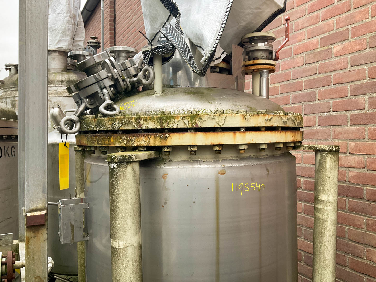 General SKU345S686 MakeAlois Binderberger Albi (AT) No.1248 Year of construction1994 LocationBarneveld Pressure Working pressure3.2 Bar Vacuum possiblecheck Working pressure jacket9 Bar Main Features MaterialStainless steel Volume6300 Ltr. Motor15 KW Specified Features - Stainless Steel Reactor Reactorcheck Capacity6300 Ltr. (max. 7700 Ltr) Vessel sizesdia. 2000x2000 mm Dished bottomcheck Dished top sidecheck ManholeDN600 Top connectionsDN250, DN200, DN100, DN80, DN50 OutletDN80 Half coil jacketedcheck (200 Ltr.) Max. temperature-30/200 °C With paddle stirrercheck Motor15,0 KW, 400 Volt (EExdeIICT4) Speed mixing shaft62 rpm Stainless Steel Reactors MaterialStainless steel 1.4571 (316Ti) Information ATEX compatiblecheckStainless Steel ReactorsCatalysts & fillersSolventsDetergent & surf.Other pharmaceuticsCosmeticsOrganicsLubricants & oleoSolid pharmaceutic ...