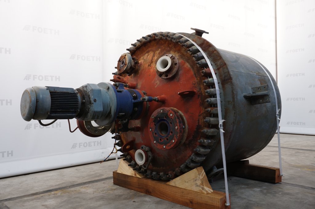 General SKU062E216 MakeHagemann GmbH Beckum No.88/0093 Year of construction1988 LocationBarneveld Pressure Working pressure3.2 Bar Vacuum possiblecheck Working pressure jacket16 Bar Main Features MaterialStainless steel Volume6300 Ltr. Motor17.5 KW Specified Features - Stainless Steel Reactor Reactorcheck Capacity6300 l (bruto 8300 l) Vessel sizesDia. 2000 x 1800 mm Dished bottomcheck Dished top sidecheck Manholedia. 500 mm Top connections(13x) Outletdia. 100 mm Half coil jacketedcheck Max. temperature200°C With anchor stirrercheck Motor17,5 KW, (500 V, 1400 rpm (Ex)) Speed mixing shaft7,8- 34 rpm Stainless Steel Reactors MaterialStainless steel 1.4439 (317LMN) Information Floorspace2,5 x 2,5 m Total height5,7 m Weight4600 kgStainless Steel ReactorsCatalysts & fillersSolventsDiscountDetergent & surf.Other pharmaceuticsCosmeticsOrganicsLubricants & oleoS ...