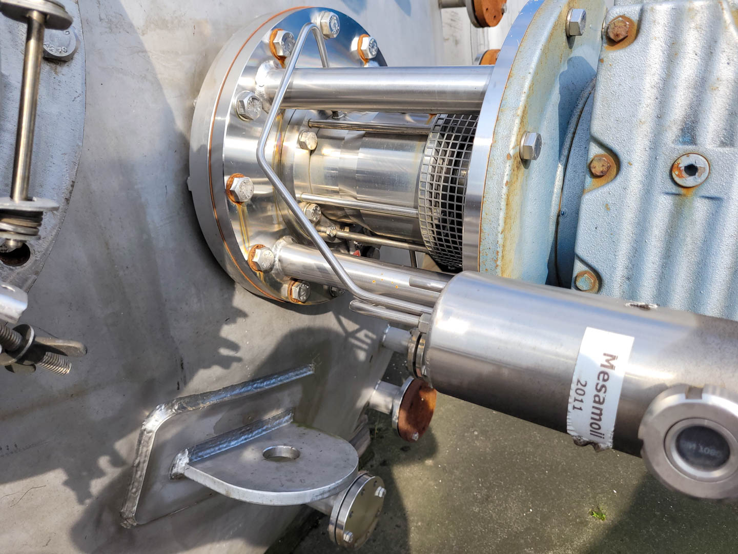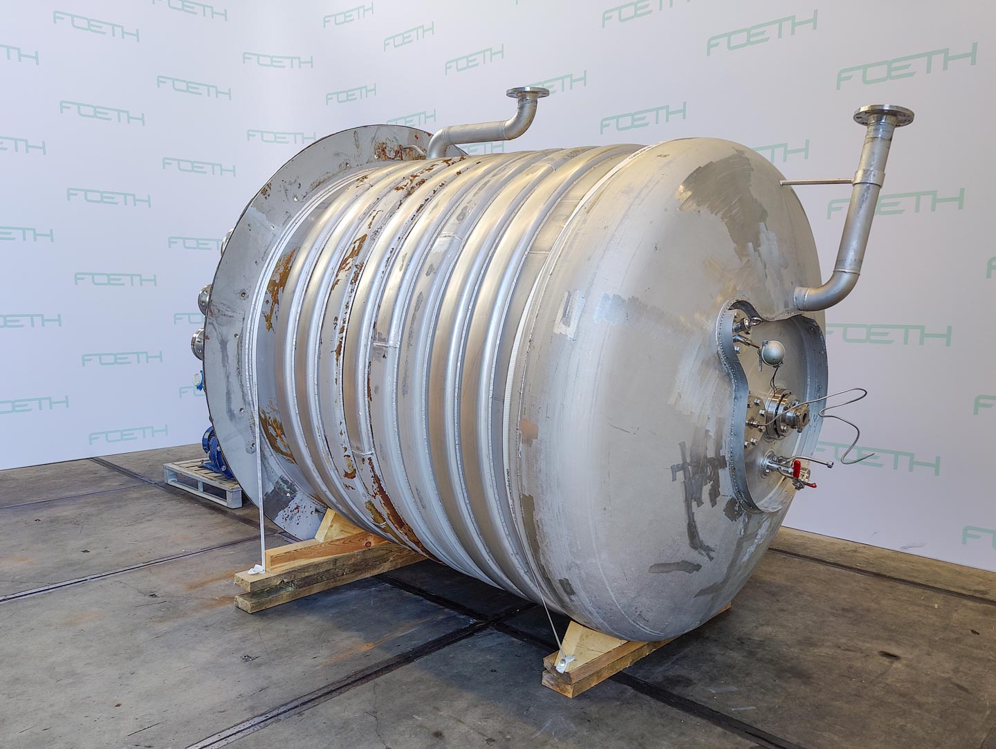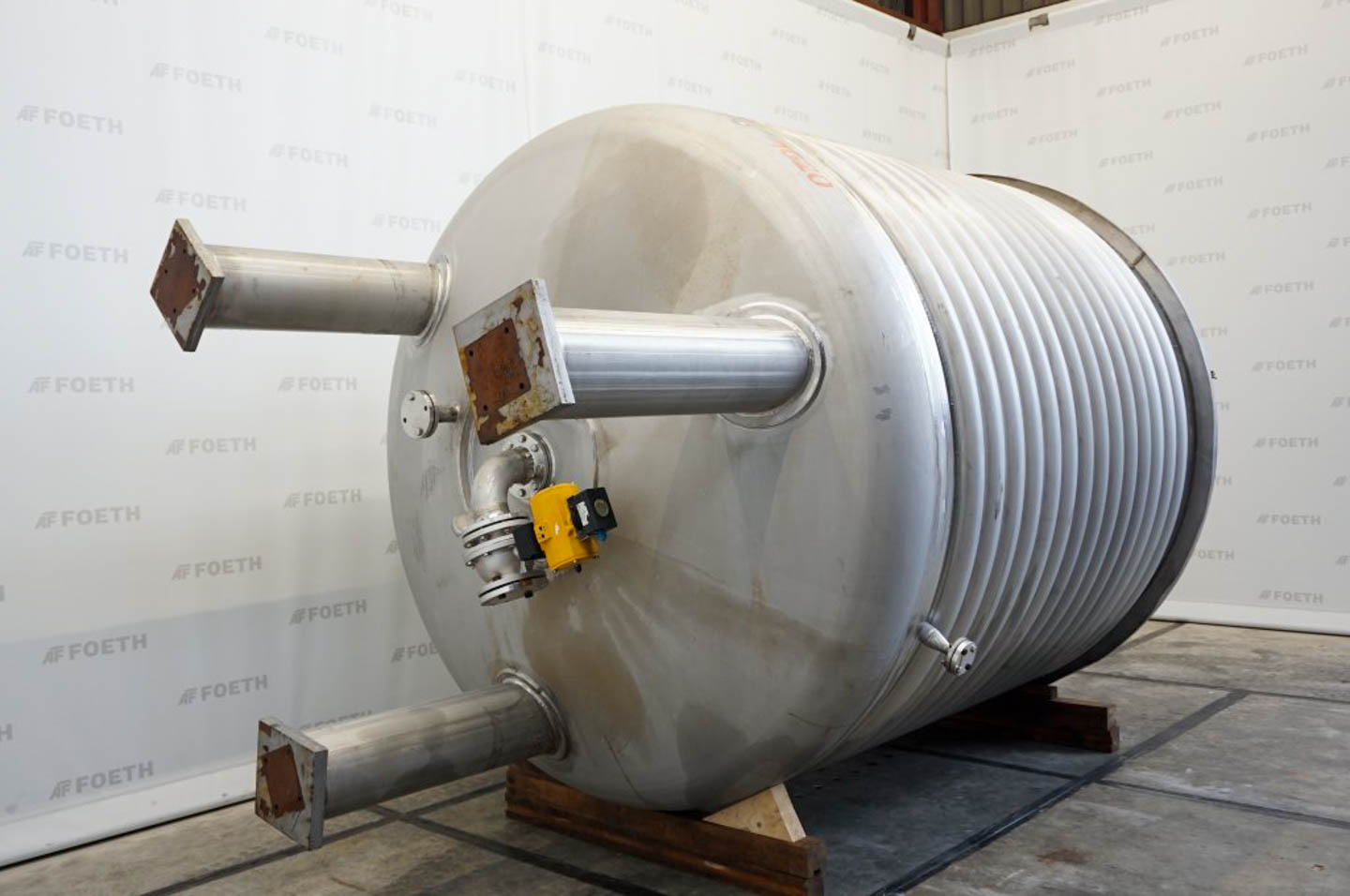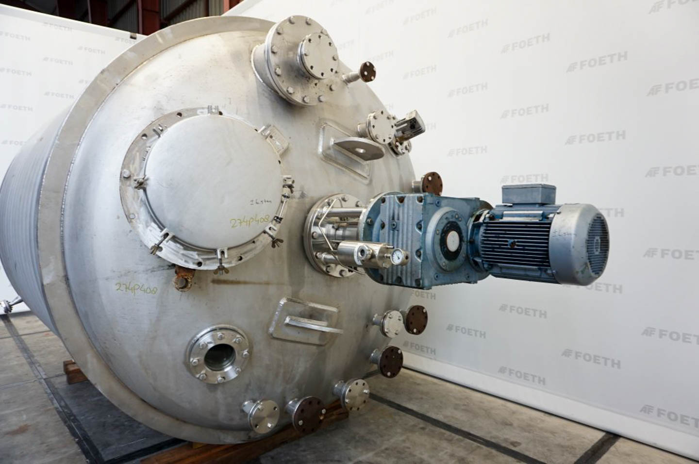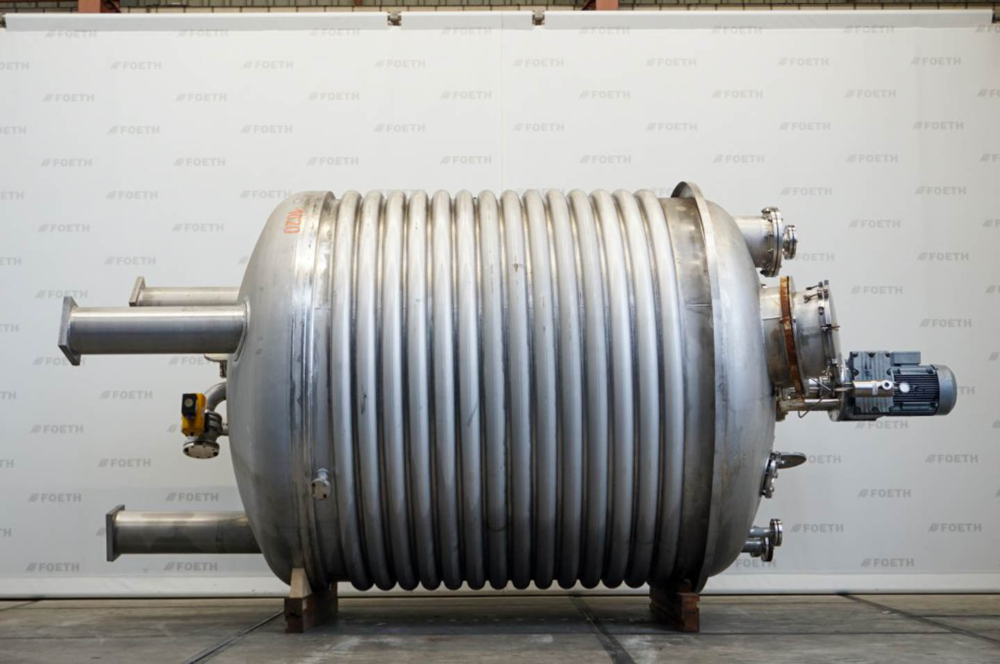 General SKU345S710 MakeAlois Binderberger Albi (AT) No.1250 Year of construction1994 LocationBarneveld Pressure Working pressure3.2 Bar Vacuum possiblecheck Working pressure jacket9 Bar Vacuum possible jacketcheck Main Features MaterialStainless steel Volume6300 Ltr. Motor15 KW Specified Features - Stainless Steel Reactor Reactorcheck Capacity6300 Ltr. (max. 7700 Ltr.) Vessel sizesdia. 2000x2940 mm Dished bottomcheck Dished top sidecheck ManholeDN600 Top connectionsDN250, DN200, DN150, DN80, DN50 OutletDN80 Half coil jacketedcheck (200 Ltr.) Max. temperature-30/200 °C With paddle stirrercheck (HWL 080-D) Motor15 KW, 400 Volt (EExdeII CT4) Speed mixing shaft62 rpm Stainless Steel Reactors MaterialStainless steel 1.4571 (316Ti) Information Floorspace2,5x2,5 m Total height3 m ATEX compatiblecheckStainless Steel ReactorsCatalysts & fillersSolventsDetergent ...