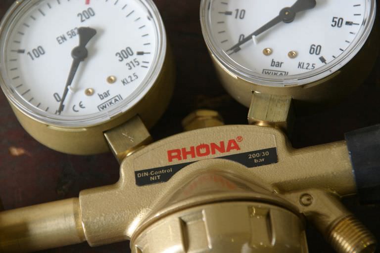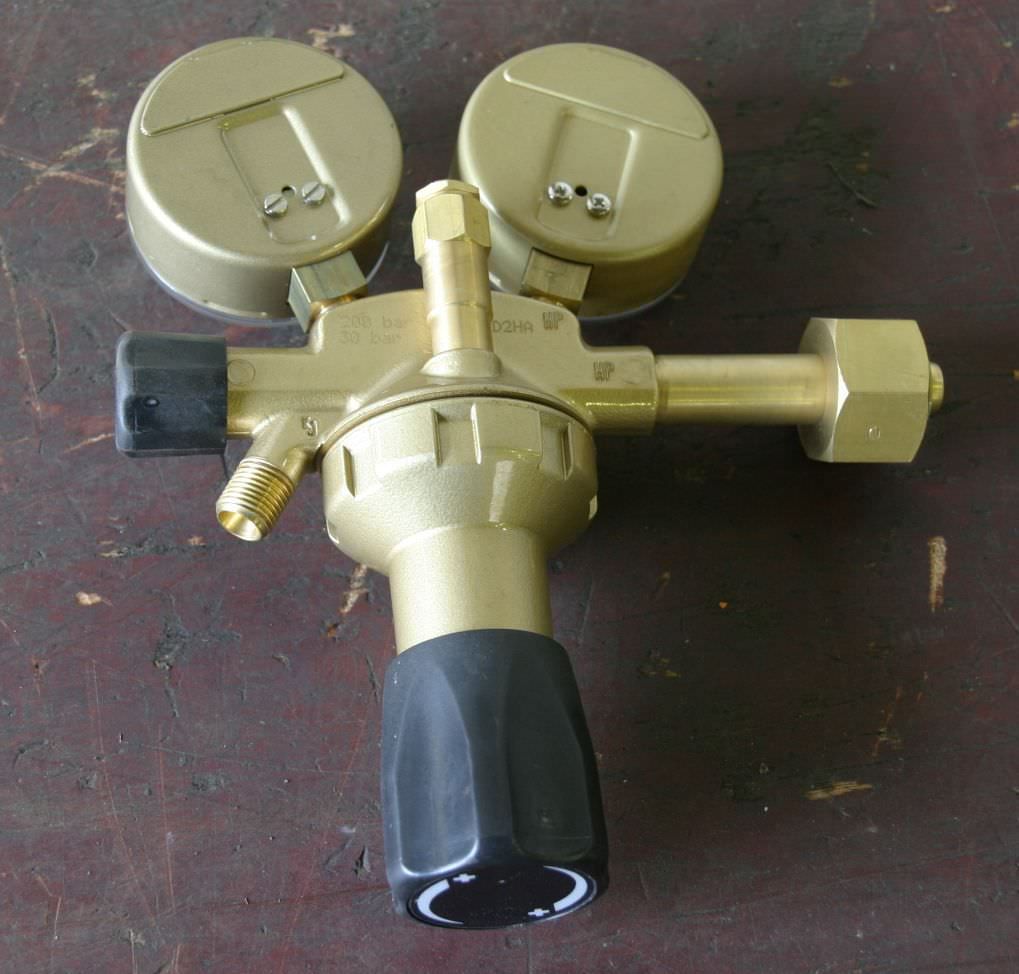 Pressure reducers, pressure regulators, manometers -for nitrogen -Inlet pressure: max. 200 bar -Outlet pressure: 0 - 50 bar adjustable -Number: 1x reducer available -Price: per piece -Weight: 1.6 kg/piece