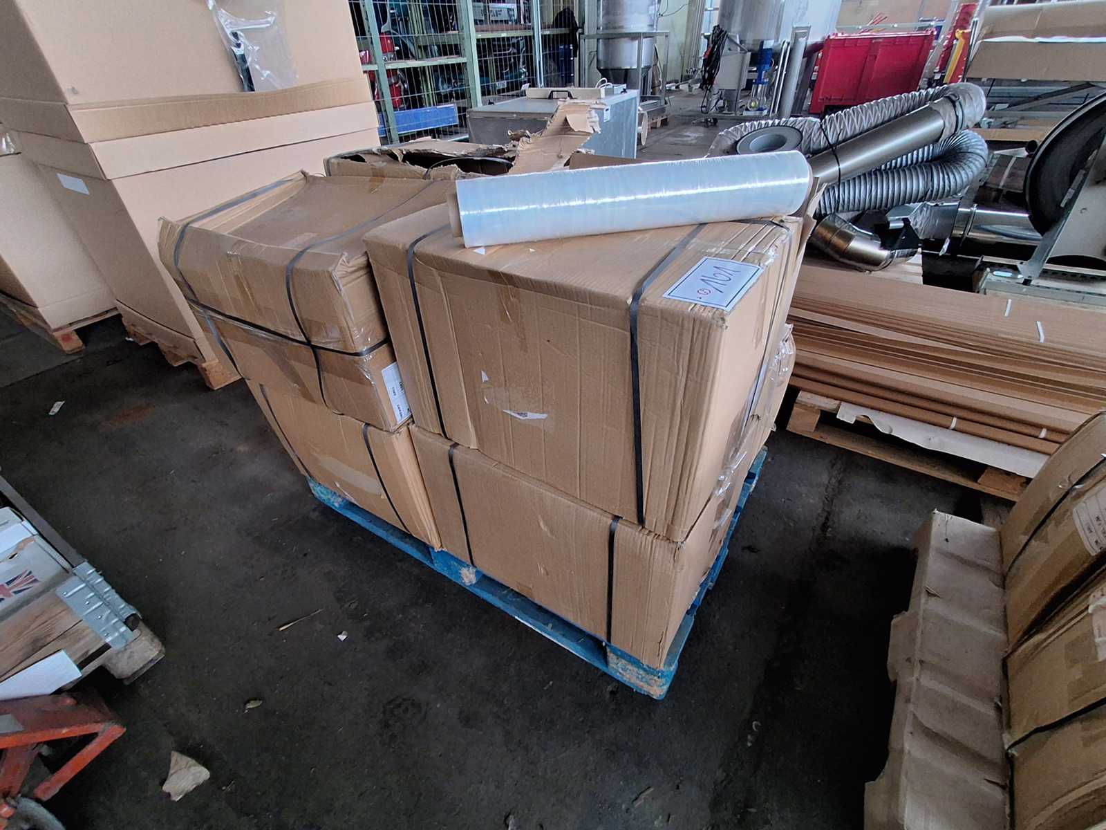 A fully automatic horizontal tunnel stretch wrapper Bang & Co for securing products on corrugated cardboard blanks is available. Turntable speed: 100rpm, max. conveyor speed: 18m/min, carton width range: 70mm-650mm, min. product length: 200mm, max. spool diameter: 140mm, max. spool height: 125mm, film roll inner diameter: 38mm, film thickness range: 18µm-40µm. Machine dimensions X/Y/Z: approx. 1600mm/1250mm/1650mm, weight: approx. 500kg, operating hours: approx. 6851h. Dokumentation vorhanden. An on-site inspection is possible.