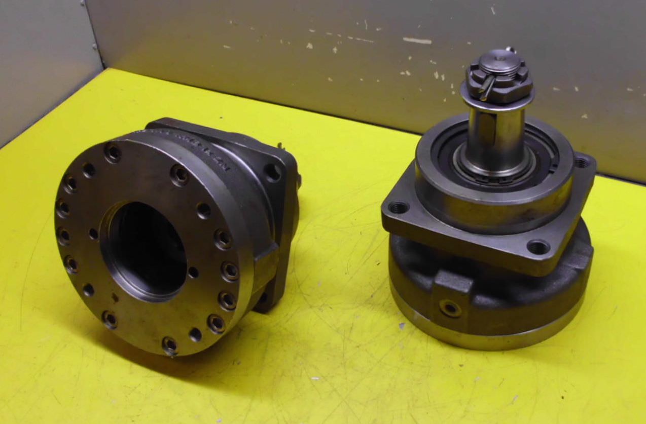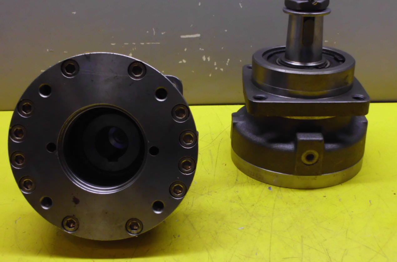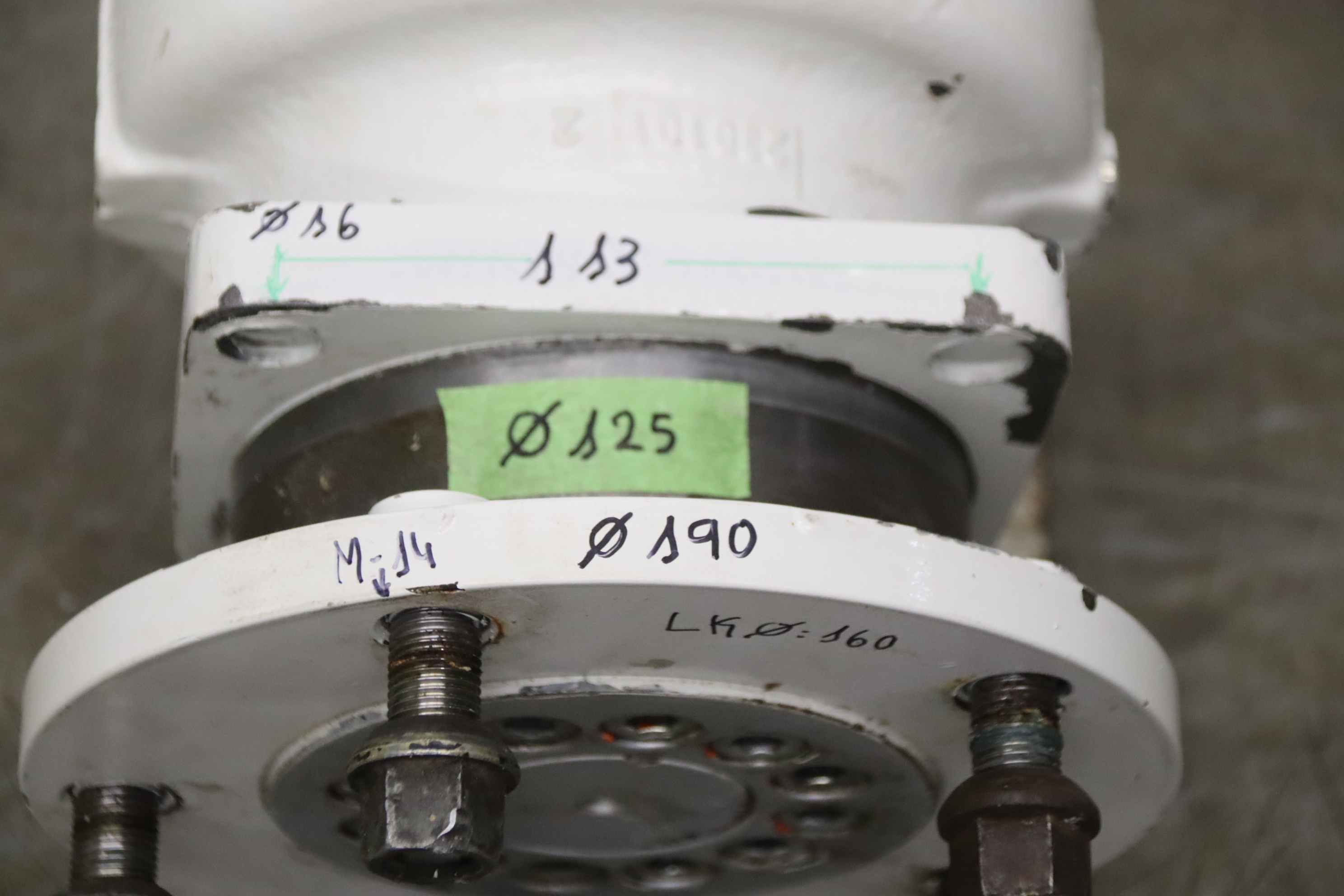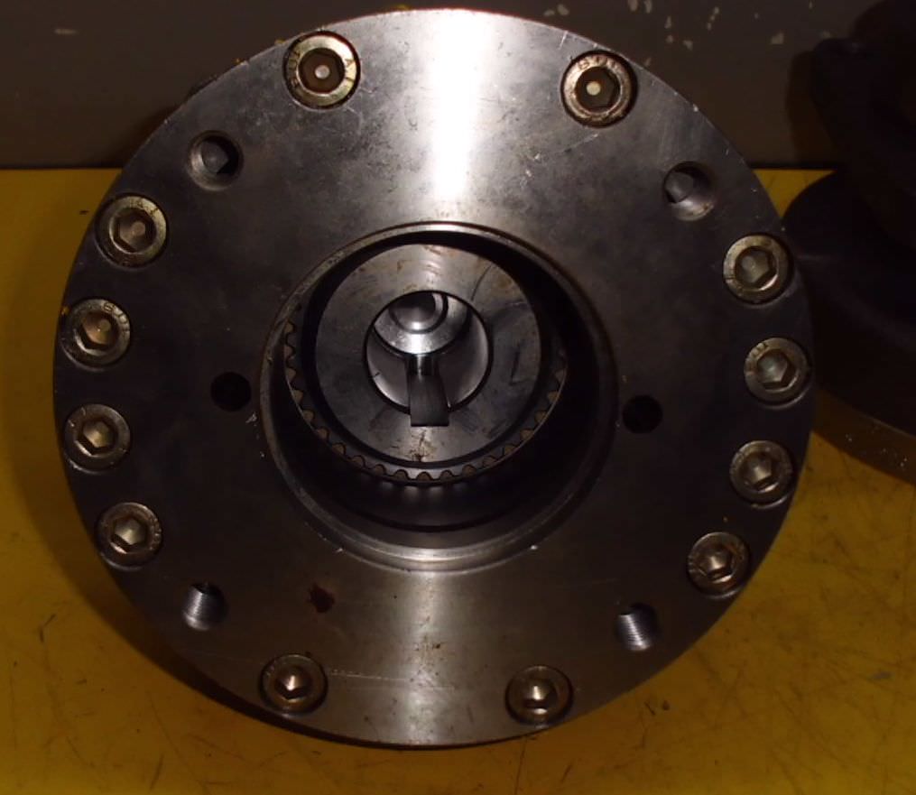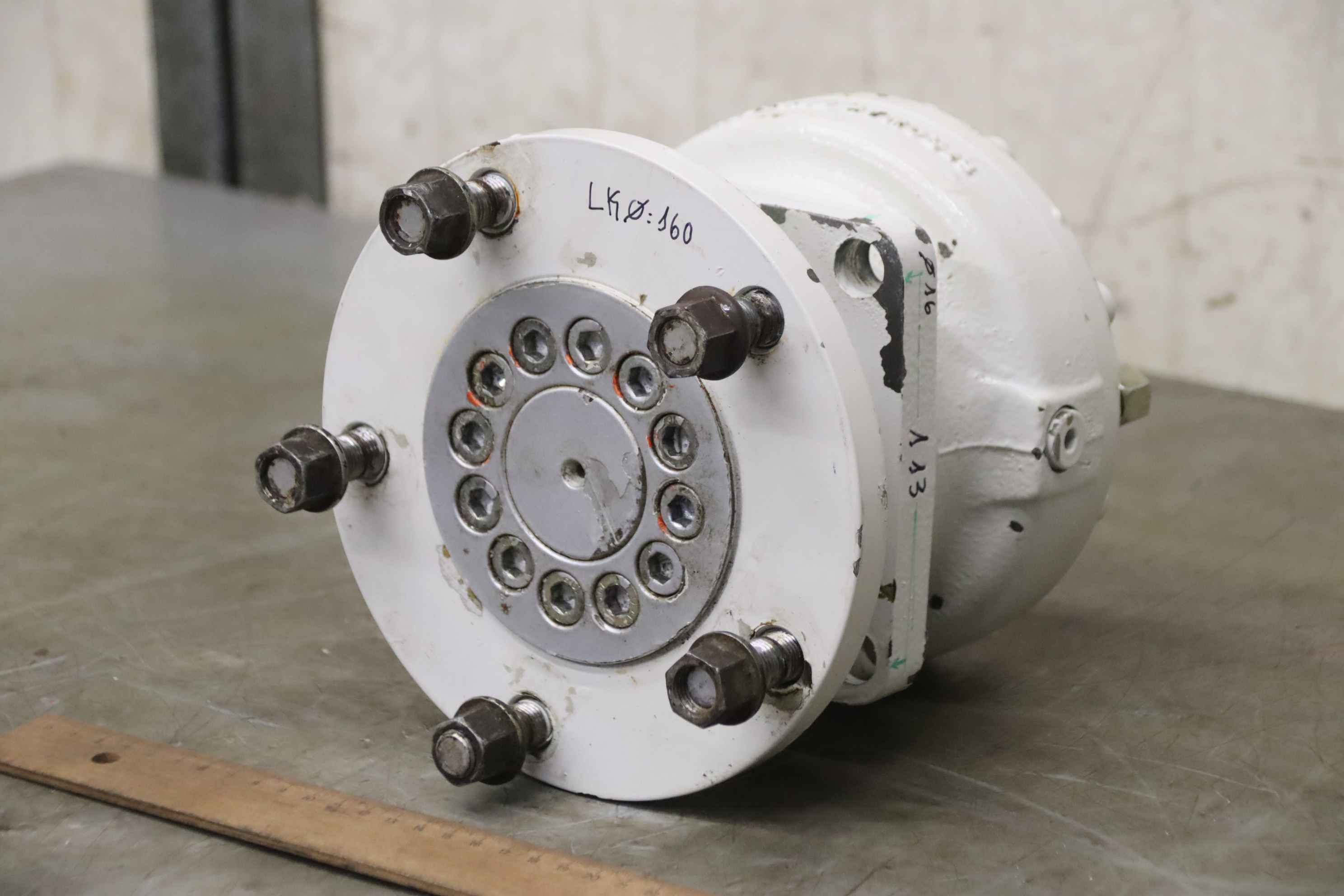 Brake for hydraulic motor, hydraulic motor, oil motor, hydraulic pump, multi-disc spring-loaded brake, multi-disc spring-loaded brake -Manufacturer: Stromag, fluid-switched multi-plate spring-loaded brake from the GSL aerial work platform -Bolt circle: Ø 160 mm M14 -Dimensions: see photos -universally applicable -Number: 2x brakes available -Price per piece -Dimensions: 220/190/H190 mm -Weight: 19kg/pcs