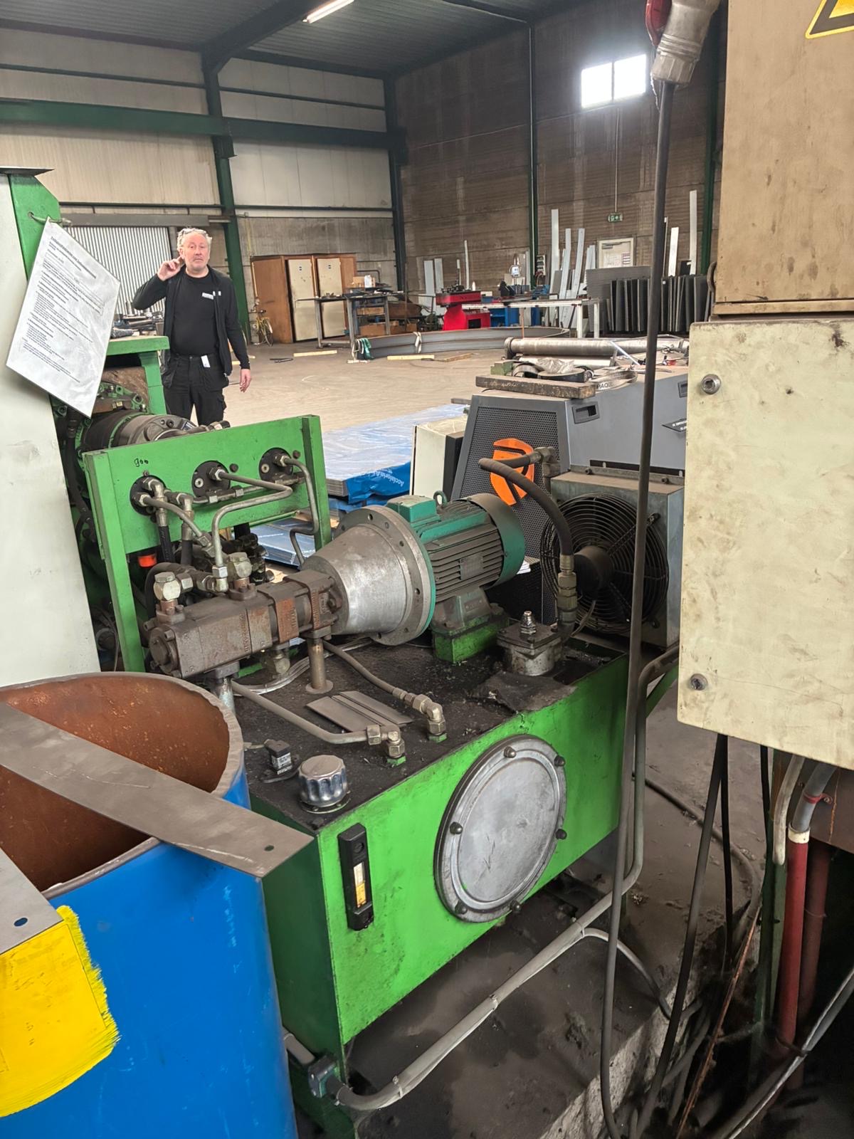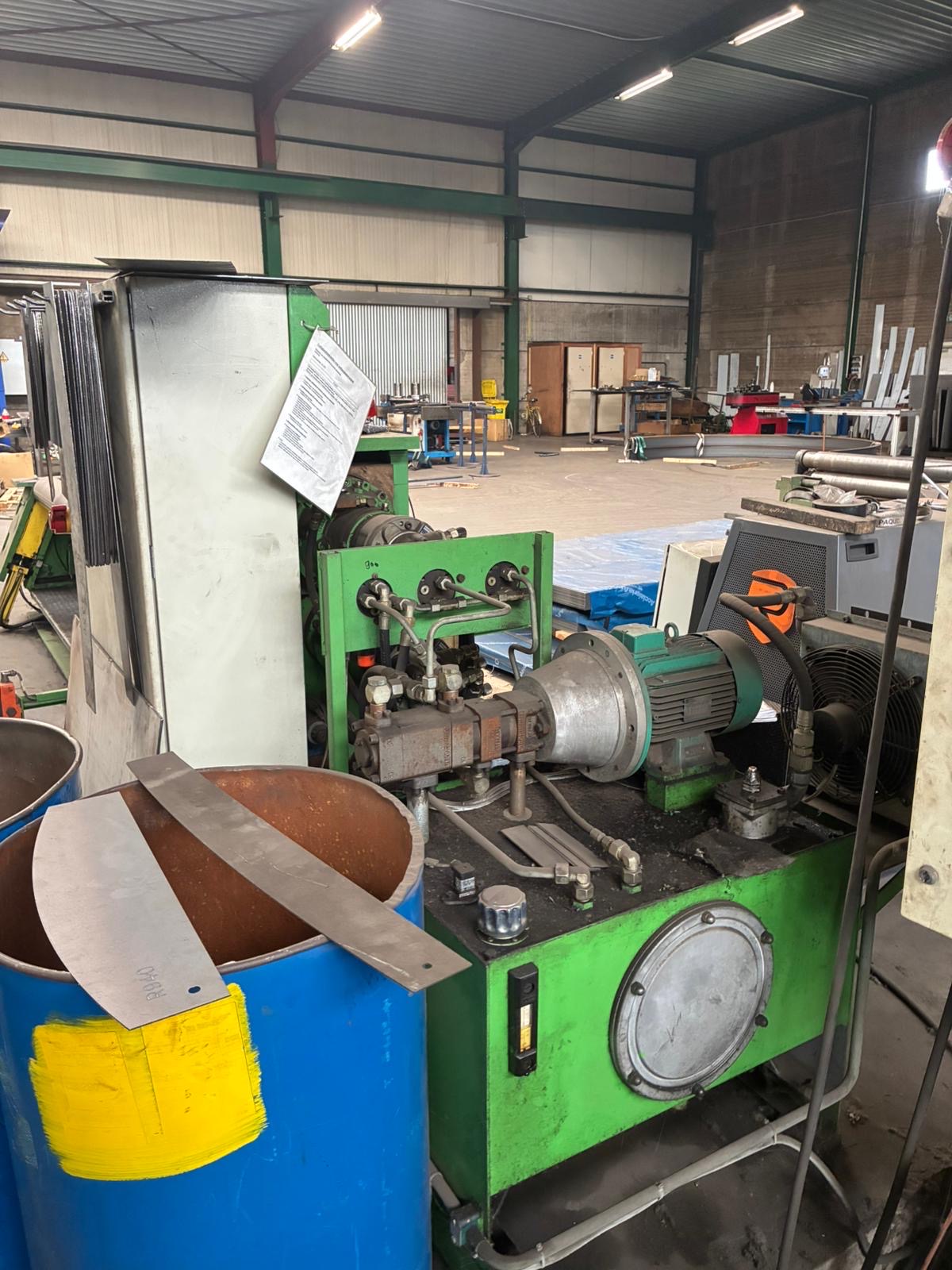 Press capacity: 80 ton Ram stroke adjustable: 4 -60 mm Slide adjustment: 0 - 80 mm Shut height (stroke down, adjustment up): 310 mm Free frontal opening L-R: 800 mm Table height over floor: 1150 mm Table surface area : 780 x 640 mm Slide area: 800 x 460 mm Hole in table: 690 x 170 mm Number of strokes: 30 - 300 s.p.m. Required power: 21 kW Height over floor approx.: 2900 mm Weight of machine approx.: 12 ton Control: Siemens S5