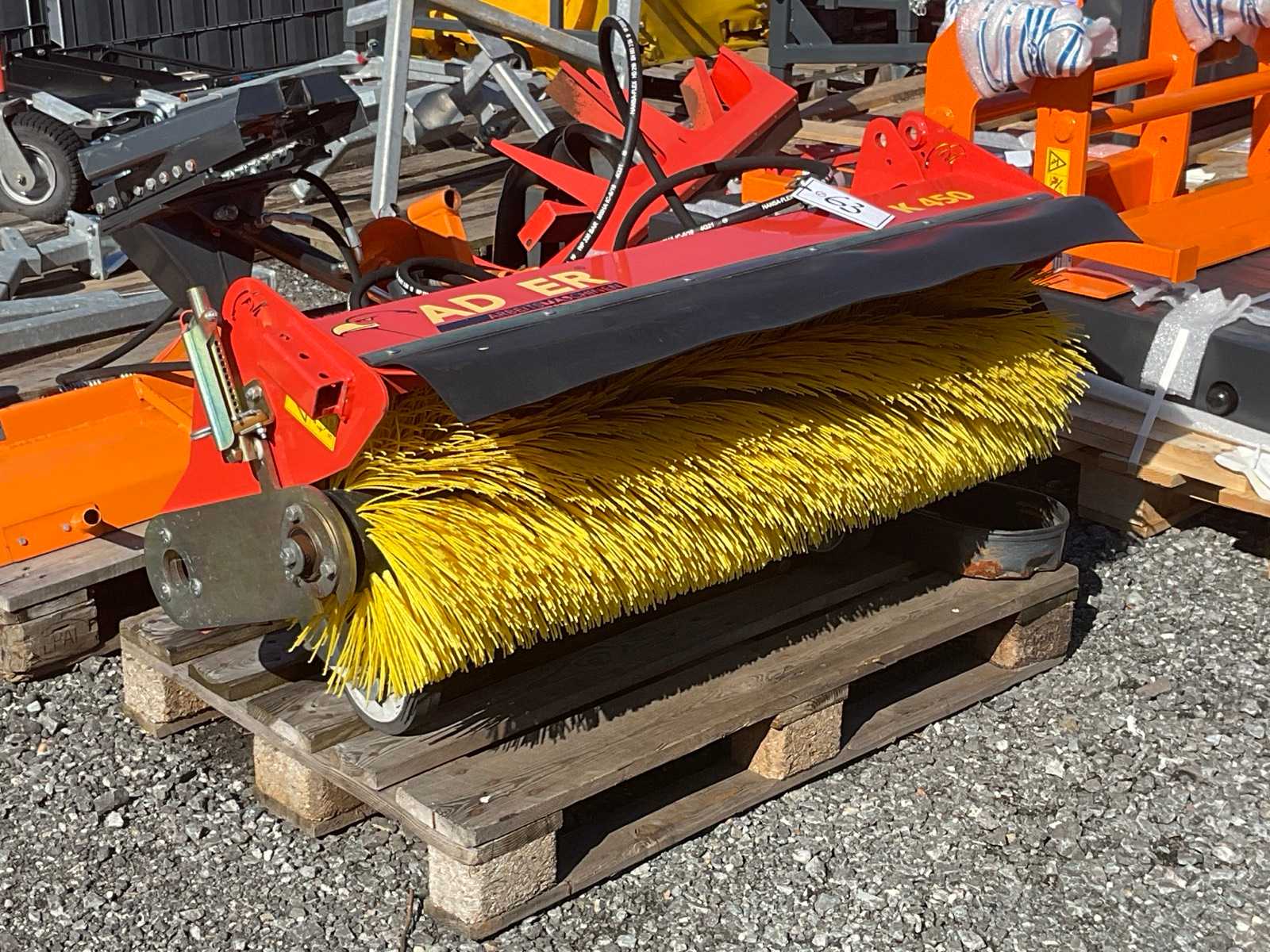 Sweeper in very good condition, was little used. The machine is fully functional and ready for immediate use. Working width approx. 2.50 m. Robust sweeping roller with fine wire bristles, suitable for fine and coarse dirt. Integrated spray system with nozzles behind the brush for dust binding. Hydraulic drive via tractor. Normal, slight signs of wear present. Auction-ID: 04J-BM7-1