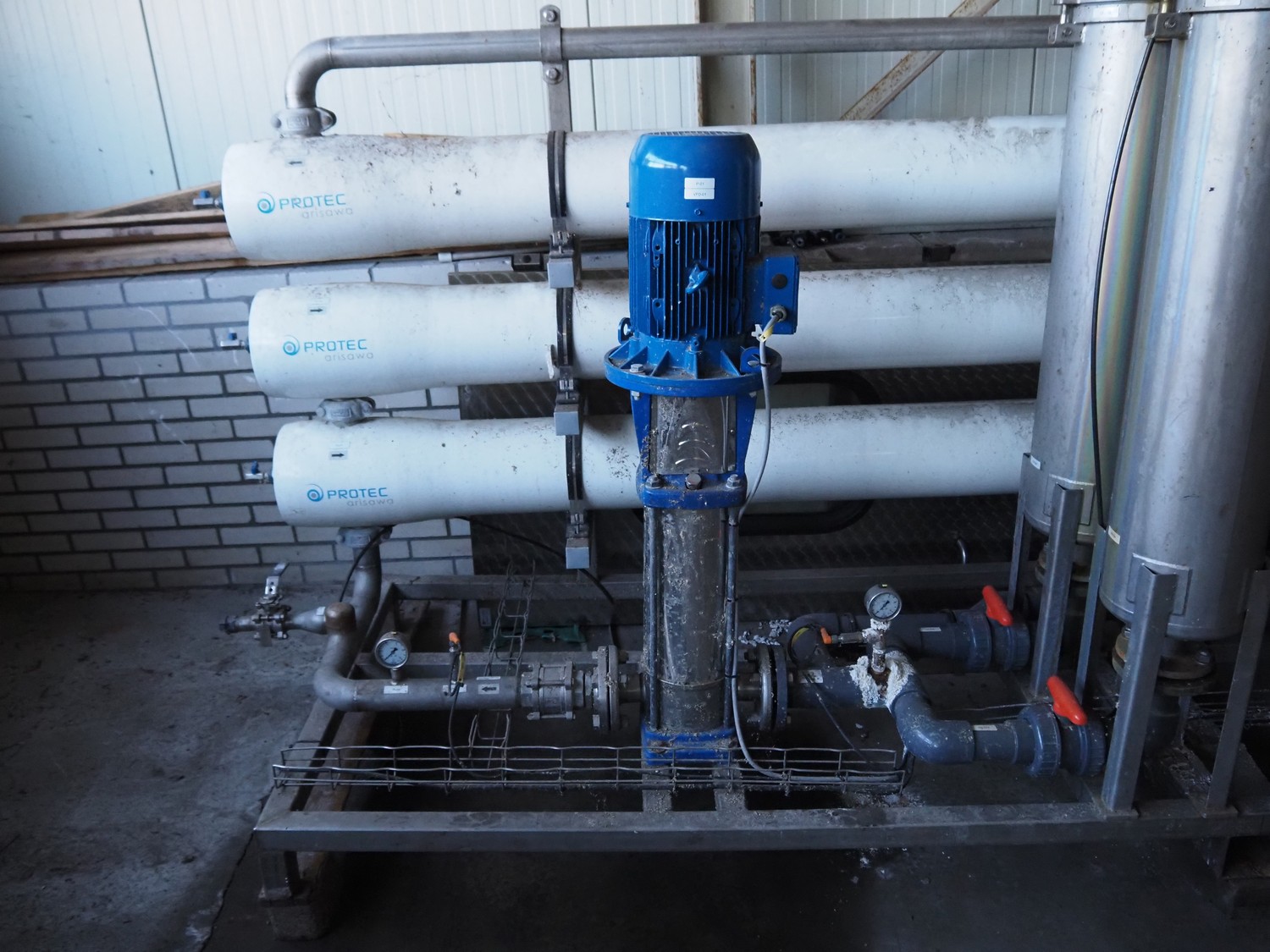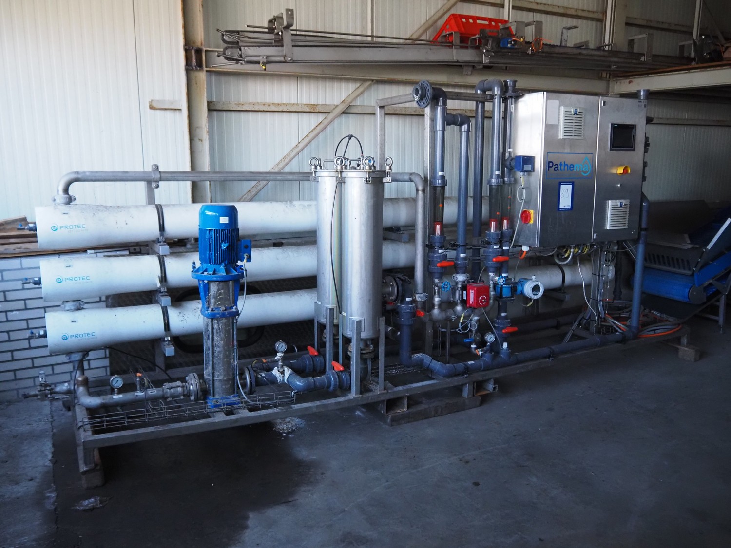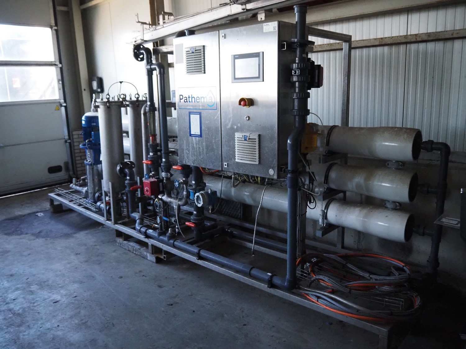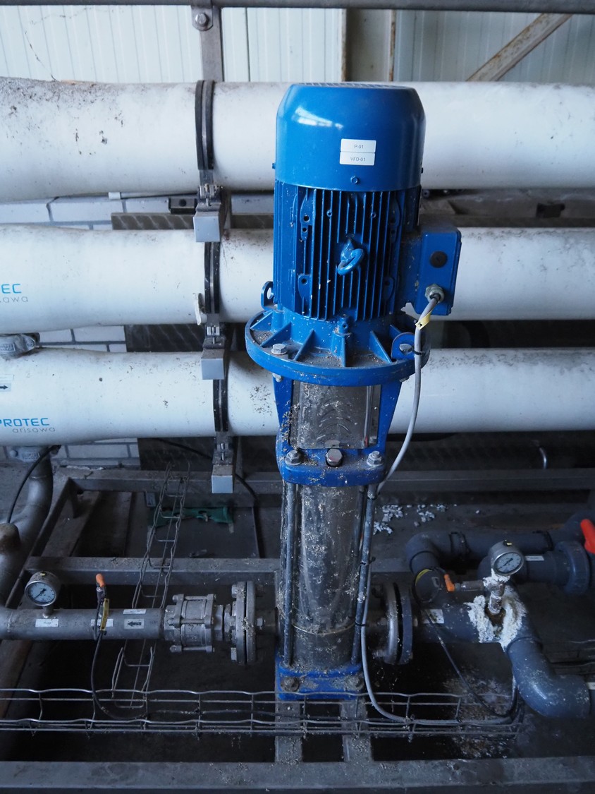 Turbin reverse osmose system, type: RO-10, serial number: PAT2020-384, year of construction: 11-1-2021, design volume: 10 m³ per hour, 16 bar, 32 amp, dimensions: 4600 mm x 1000 mm x 2000 mm.