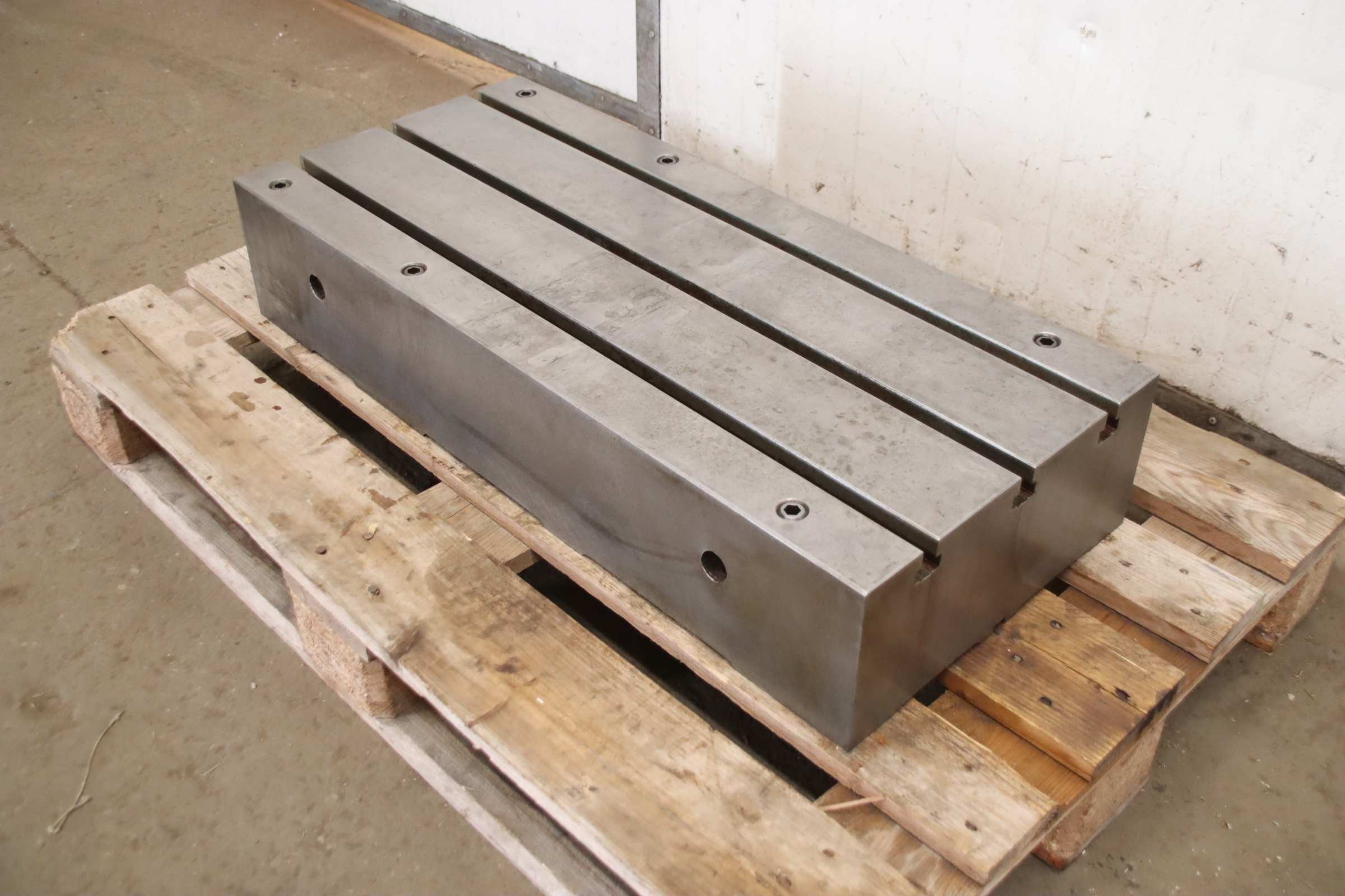 T-slot Table 3000 x 135 x 430 mm Thickness: 430 mm Length: 3000 mm Large: 1350 mm Weight: 5 ton With (1) -- Without (2) nuts: 7 t-slots