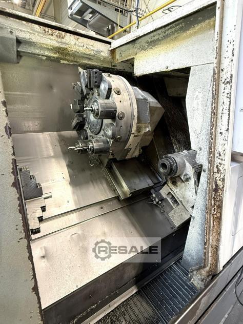 x-travel 185 mm z-travel 360 mm b-way 460 mm Control Mazatrol 640 T Swing diameter max. 550 mm Turning diameter max. 280 mm Workpiece weight max. 200 kg Bar passage 51 mm Main spindle speed 35-6000 rpm Milling spindle speed range 25-4500 rpm Rapid traverse in X and Z direction 30/33 m/min Rapid traverse B axis 30 m/min Tool turret 12 places Capacity: Chuck Size: 6 inches Swing diameter max.: 550 mm Standard turning diameter: 221 mm Turning diameter max.: 280 mm Bar passage max.: 51 mm Distance between spindle nose and turret edge: 80-535 mm Main spindle: Speed: 35-6000 rpm Spindle bore: 61 mm Sub-spindle: Speed: 35-6000 rpm Spindle bore: 52 mm Revolver: Number of tools: 12 pieces Tool size: External turning chisel: 20 mm Internal lathe chisel: 32 mm Milling drill: 16 mm Milling tap: M12 End mill: 16 mm Milling spindle speed: 25-4500 rpm Equipment/access ...