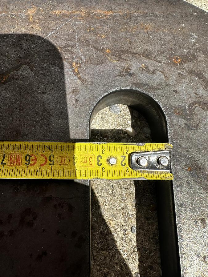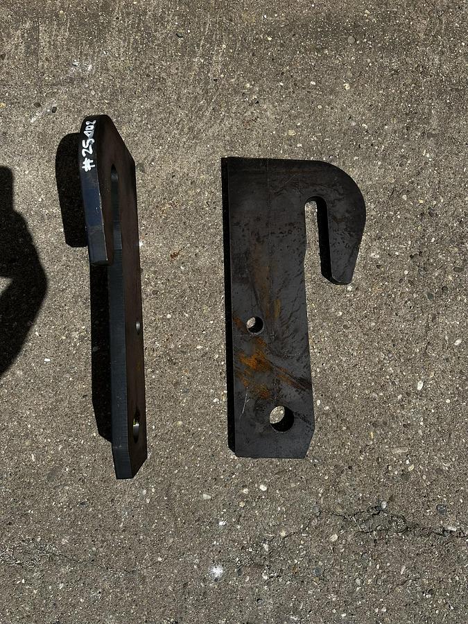 BIG weld-on hook suitable for Genie / Terex attachment, - Year of construction: 2025, - made of S355 steel, Dimensions:, Top bolt: Ã 32 mm, Bolt center: Ã 25 mm, Bottom bolt: Ã 35 mm, Bolt center-to-center distance: 330 mm, more recordings available!