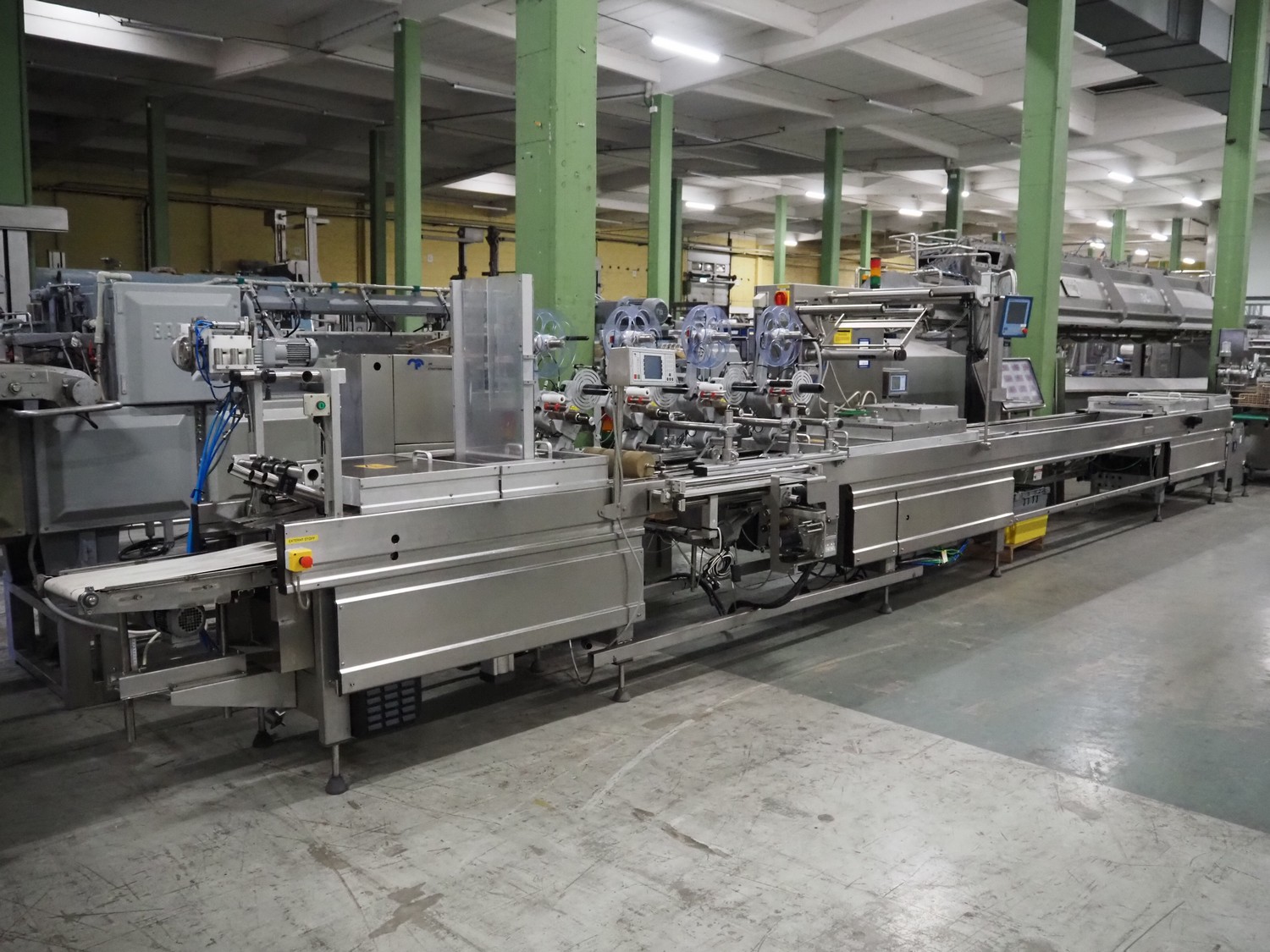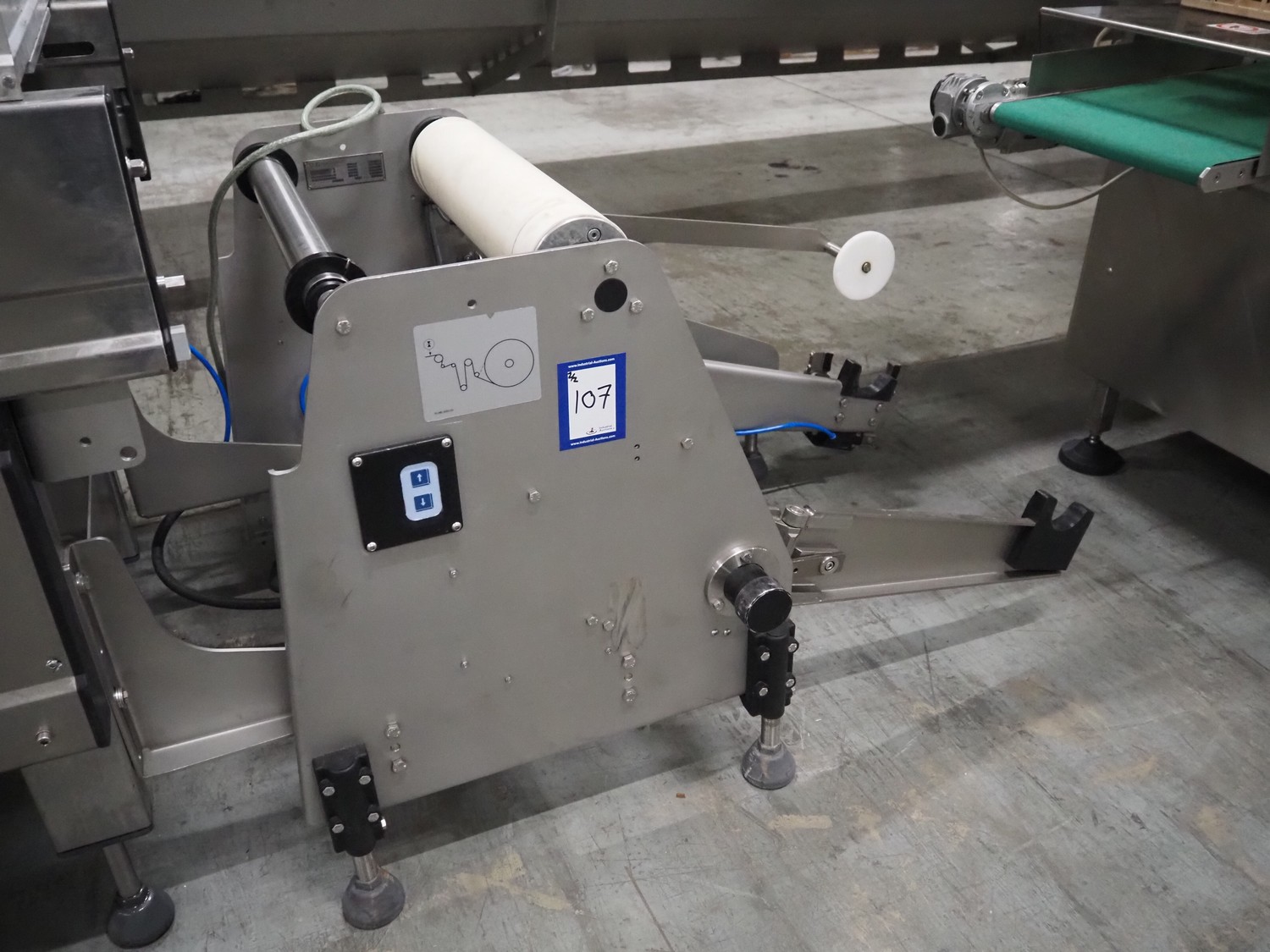 ILLIG PLS75B Inline Counter/ Stacker, with Hole Punch Station, age 2006 used Inline with ILLIG RDM75K ! Max. Stacking Area: 750 x 350 mm Min Height of formed product: 25 mm Max. height of Formed Product: 150 mm Min. dia. of product : Ø 40 mm Max. dia. of Product: Ø 150 mm Max. length of Product Stack: 730 mm Output rate of Product Stacks: 1200 Stacks/ hr Rotating Head to neatly remove Products from the Thermoformer Mold Inline Hole Punch Station Inline Counter Stacker Station Compressed Air: 0.2 L at 6 bar, approximately Total Drive Rating: 19 kW Electrical specifications: 400 V, 3 phase, 50Hz (N/ PE) Cross delivery conveyor for counted cups. All Motors are Indramat Servo Motors Siemens SIMATIC TOUCH LED Operator Control Panel with Touch Pad Controls Siemens S7 PLC Controls Delivers Counted Cups/ Containers at Right Angles to machine direction New (Feb- ...