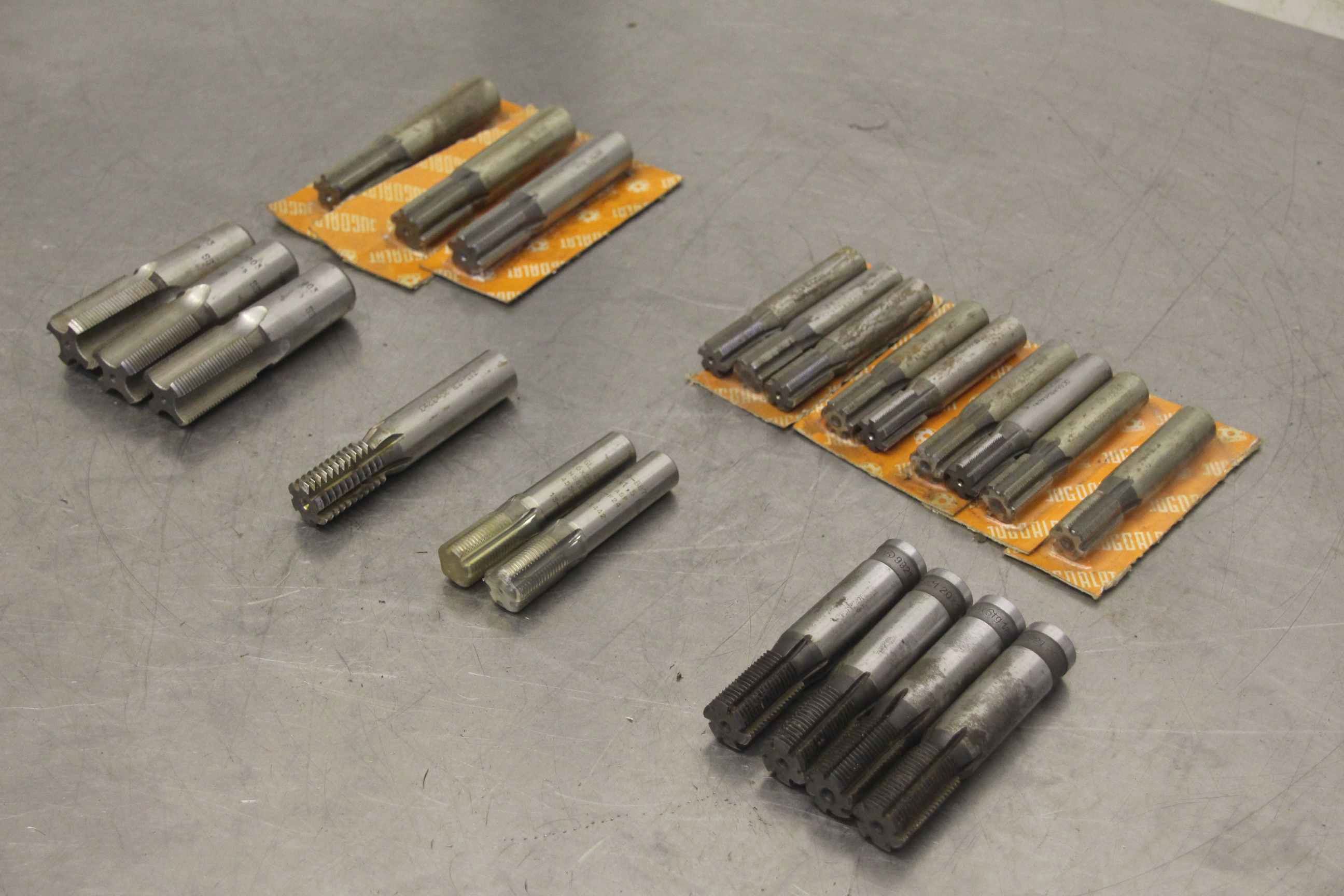 End mill, milling cutter, shank thread milling cutter, thread cutter -Manufacturer: JAL PWS P, 29 pieces shank thread milling cutters -Hole: Ø 27 mm 25 pieces, Ø 32 mm 4 pieces -Various types: see photos -Sizes: see photo parts list -Price/Sale: complete -Dimensions: 240/180/H150 mm -Total weight: 4.2 kg