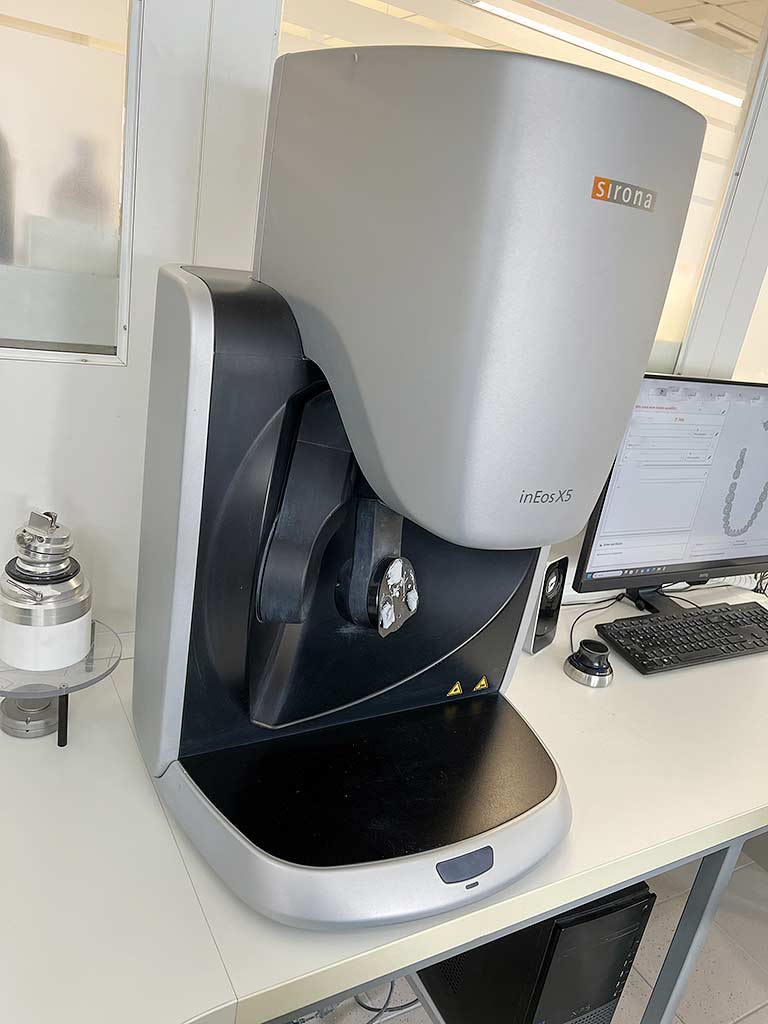 A compact Sirona laboratory scanner for the dental industry is available. Scanning method: 5-axis robotic arm, technology: digital stripe light projection with autofocus, accuracy: less than 12µm, machine dimensions X/Y/Z: approx. 480mm/740mm/460mm, weight: approx. 40kg. Accessories included. Documentation available. On-site inspection is possible.