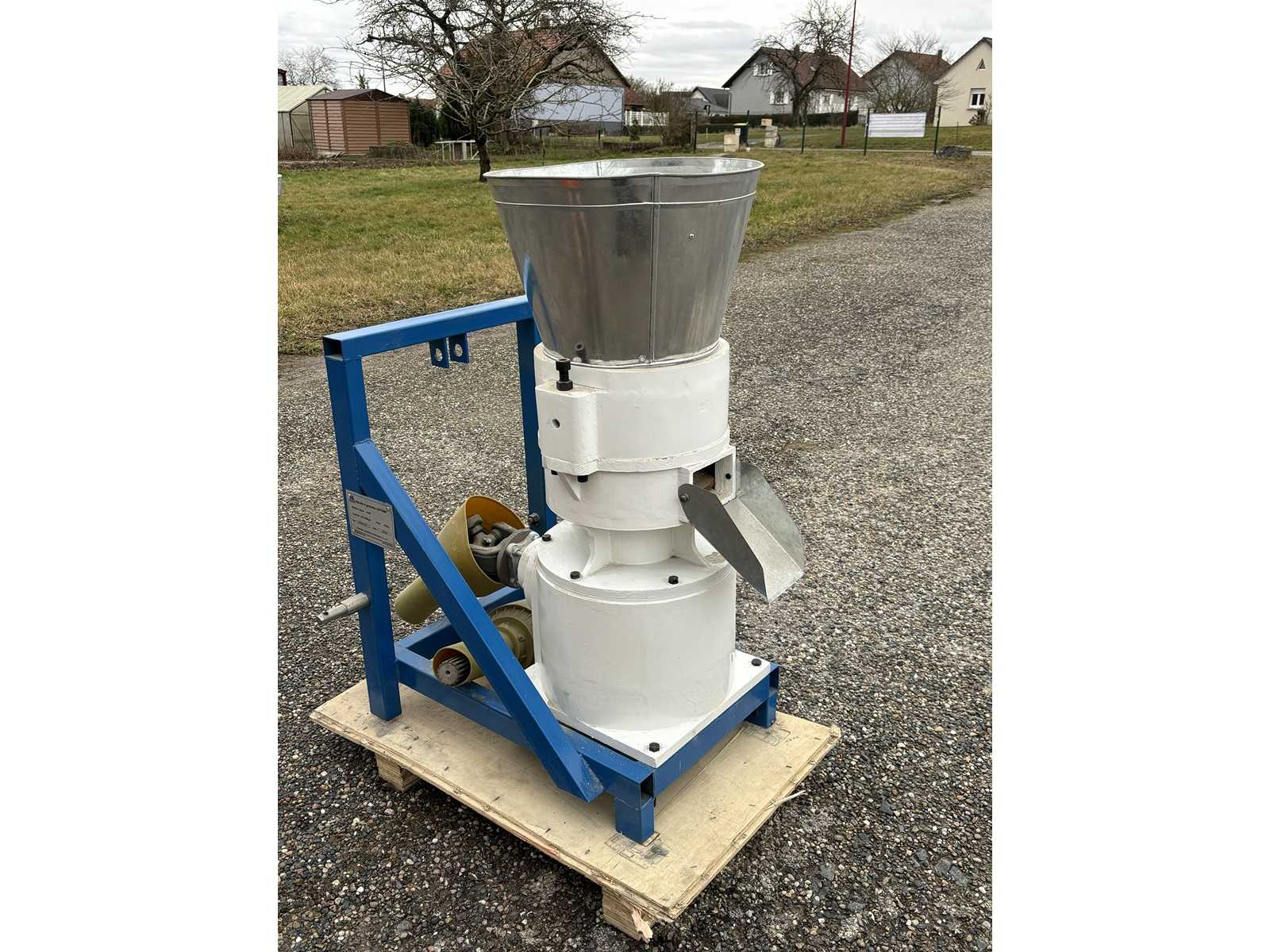 Model: LDP300P Type: Agricultural version with reinforced PTO Engine Requirements: 41 HP Recommended tractor: minimum 50 horsepower Recommended material moisture: 10–18% Production Capacity: Wood pellets: 250–400 kg/h Feed pellet: 600–800 kg/h Indicative production: approx. 100 kg/h sawdust, up to 150–200 kg/h with cereals and refined straw Compatible materials: sawdust, cereals, refined straw Dimensions (L × W × H): 1020 × 600 × 1080 mm Gross Weight (G.W): 350 kg Auction-ID: A1-45418-4