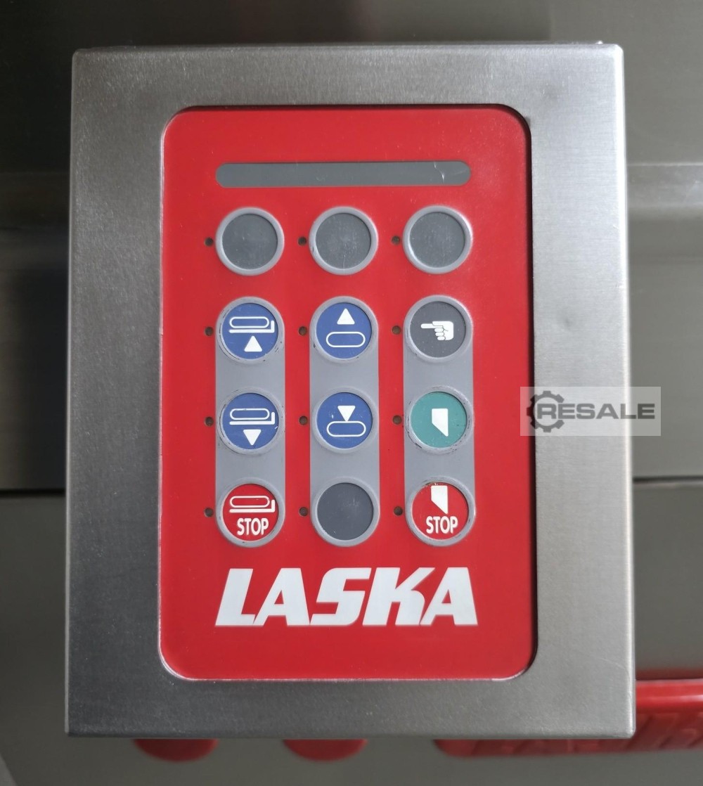Laska frozen block flaker with lifter for frozen blocks, type: GS510, serial number: Y6242, 3 x 380 V, 50 Hz, 18.5 kW, infeed height: 1750 mm, block cross section: maximum 500 mm x 300 mm, capacity: up to 4000 kg per hour, weight: 1000 kg, total dimensions: 1700 mm x 1800 mm x 2100 mm.