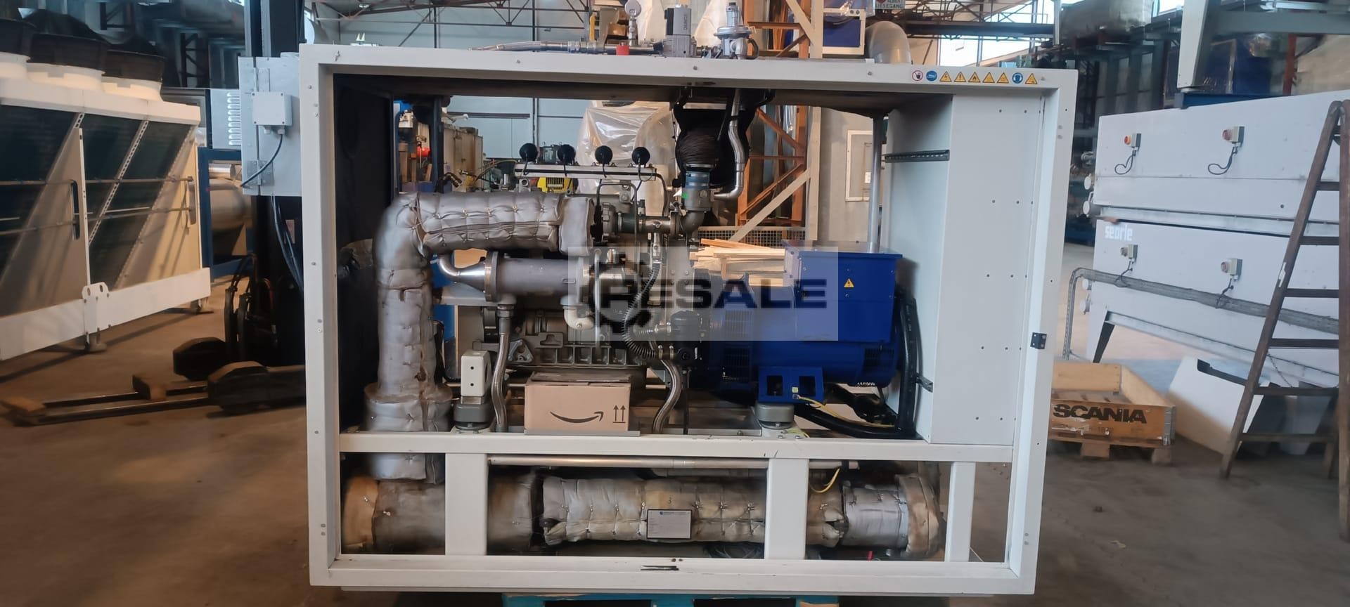 Machine name: Combined heat and power plant used Manufacturer: SEnergie GmbH Type: G6.12TI Year of Make: 2008 Generator: NEWAGE STAMFORD Generator Type: UC. I274D2 Generator kW: 100 kW Fuel Type: Sewage Gas Electrical power: 80 kW Thermal power: 123 kW Efficiency: 88.9% Dimensions: L 3,500 x W 1,100 x H 2,500 mm Curb weight: 3,000 kg Tech. Documentation: Yes Note: In 2018, a new engine was installed and the generator was rewound. Last service 15.10.2021 at 86,102 h Accessories: A control cabinet Condition: Used Price: On request