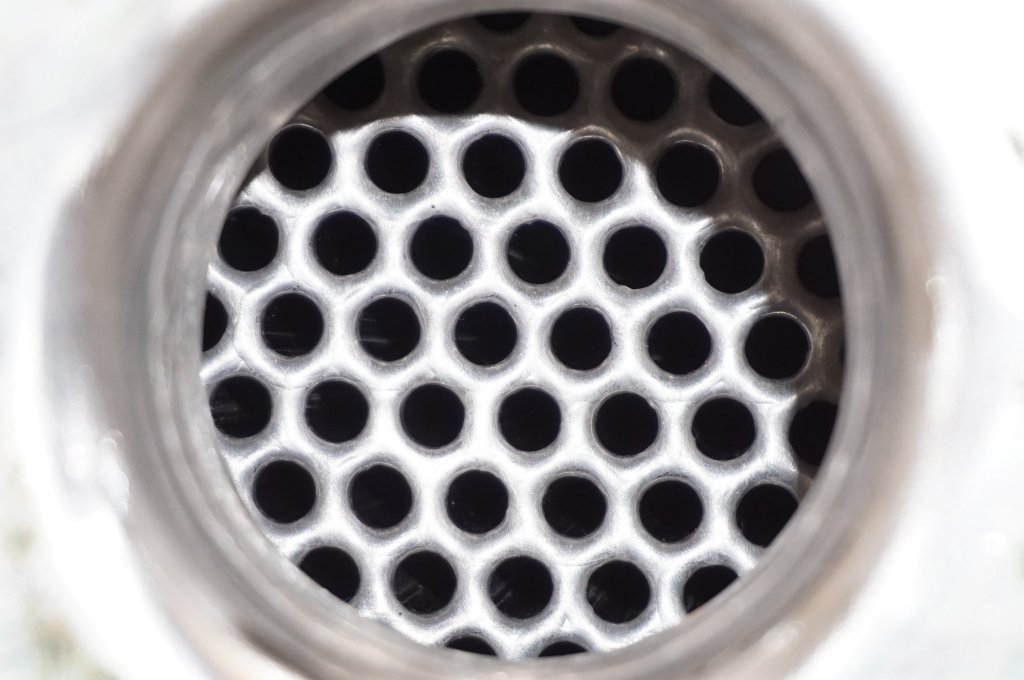 General SKU312P726 LocationBarneveld MakeGEA Tuchenhagen Dairy Sysytems GmbH TypeC15 No.C15/700096 Pressure Working pressure shell8 Bar Working pressure tubes10 Bar Main Features Shell (Material)Stainless steel Tube (Material)Stainless steel Surface0.6 m2 Specified Features - Shell and tube heat exchanger MaterialStainless steel 1.4541 (321) Heat exchangercheck Horizontalcheck Heating surface0.6 M2 Tube capacity2,5 Ltr Number of tubes:84 Tube diameterdia. 6mm Tube length440 mm Max. temperature-10/100 degr.C Shell capacity2,6 ltr Shell diameter110 mm Shell length370mm Max. temperature-10/180 degr.C. Shell connections1x dia 27 mm 1x dia 45 mm Cover connectionsdia 55mm Information Year of construction2004 Floorspace1,6x0,6 M Total height0,2 M Weight60 KgSpicesPlastic & polymersShell and tube heat exchangersCatalysts & fillersFeed additivesPaper & otherSolve ...