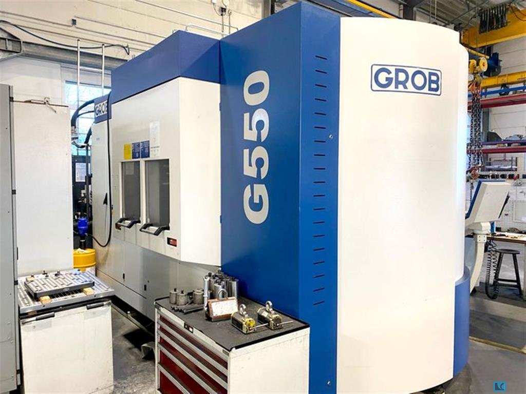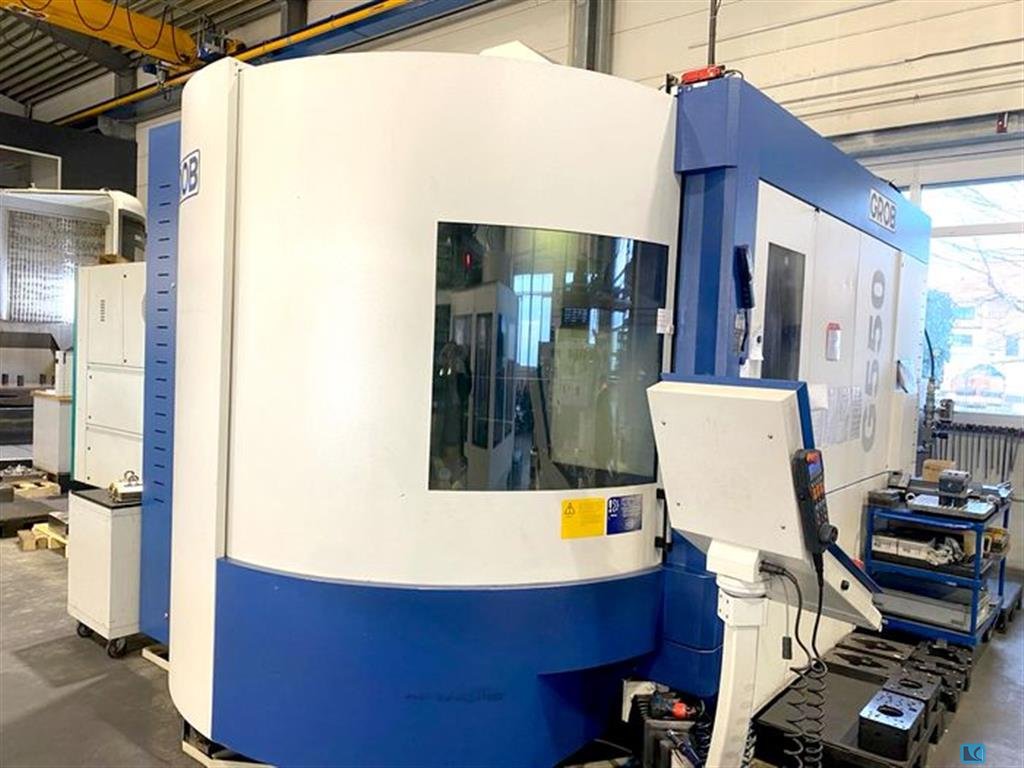 x-travel:800 mm y-travel:950 mm z-travel:1020 mm control:HEIDENHAIN iTNC 530 table load capacity:800 kg tool taper:HSK 63 turning speeds:16.000 1/min spindle:35 / 25 kW table-size:770 mm max. torque on the spindle:160 / 223 Nm tool change unit:120 (2x60) Pos. weight of the machine ca.:20 t dimensions of the machine ca.:3,3 x 6,15 x 3,2 m 5-axis simultaneously machining center with controlled swivel-rotary table (A/B-axis), milling head horizontal, internal coolant device (10-80bar), oilmist-suction, electromech. tool-length measuring device GROB, chipconveyor, 3D touch probe, KINEMATICOPT, BLUM laser, el. handwheel, hour meter: approx. 82.000 h "machine on", approx. 48.800 h "spindle on"
