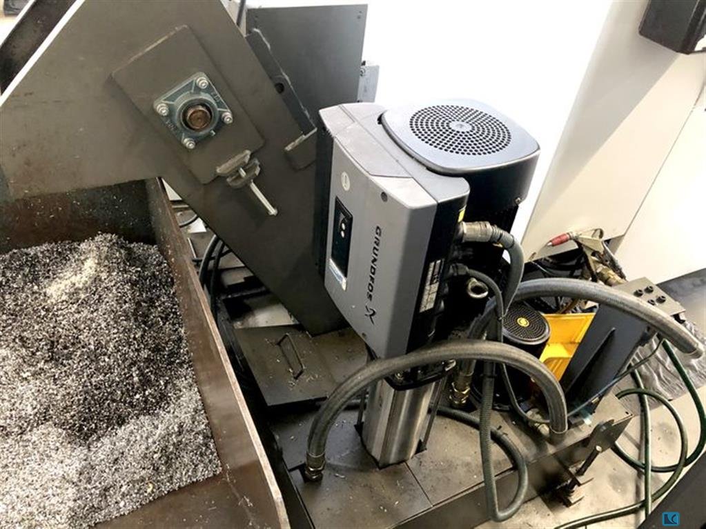 x-travel:800 mm y-travel:950 mm z-travel:1020 mm control:Sinumerik 840D sl MDynamics Operate turning speeds:10.000 1/min Spindle power:26/20 kW max. torque on the spindle:340/262 Nm tool taper:HSK-A 100 tool change unit:120 (2x60) Pos. Pallet changer 2x:630 x 630 mm table load capacity:800 kg weight of the machine ca.:20 t dimensions of the machine ca.:3,3 x 6,15 x 3,2 m 6-axis simultaneous horizontal machining center with controlled swivel-rotary table (A/B-axis), Swivel table can swing overhead (180°), that means the part is hanging down overhead and chips don?t accumulate on pallet, they can fall free into the chip conveyor CNC controlled U-axis enables radial movement of tool for variable spindling diamenter. twin pallet changer 630 x 630 mm 6 hydraulic couplings for pallet fixture clamping with rotary joint in A and B-axis special hydraulic pump for fixture coolant through spindle ...