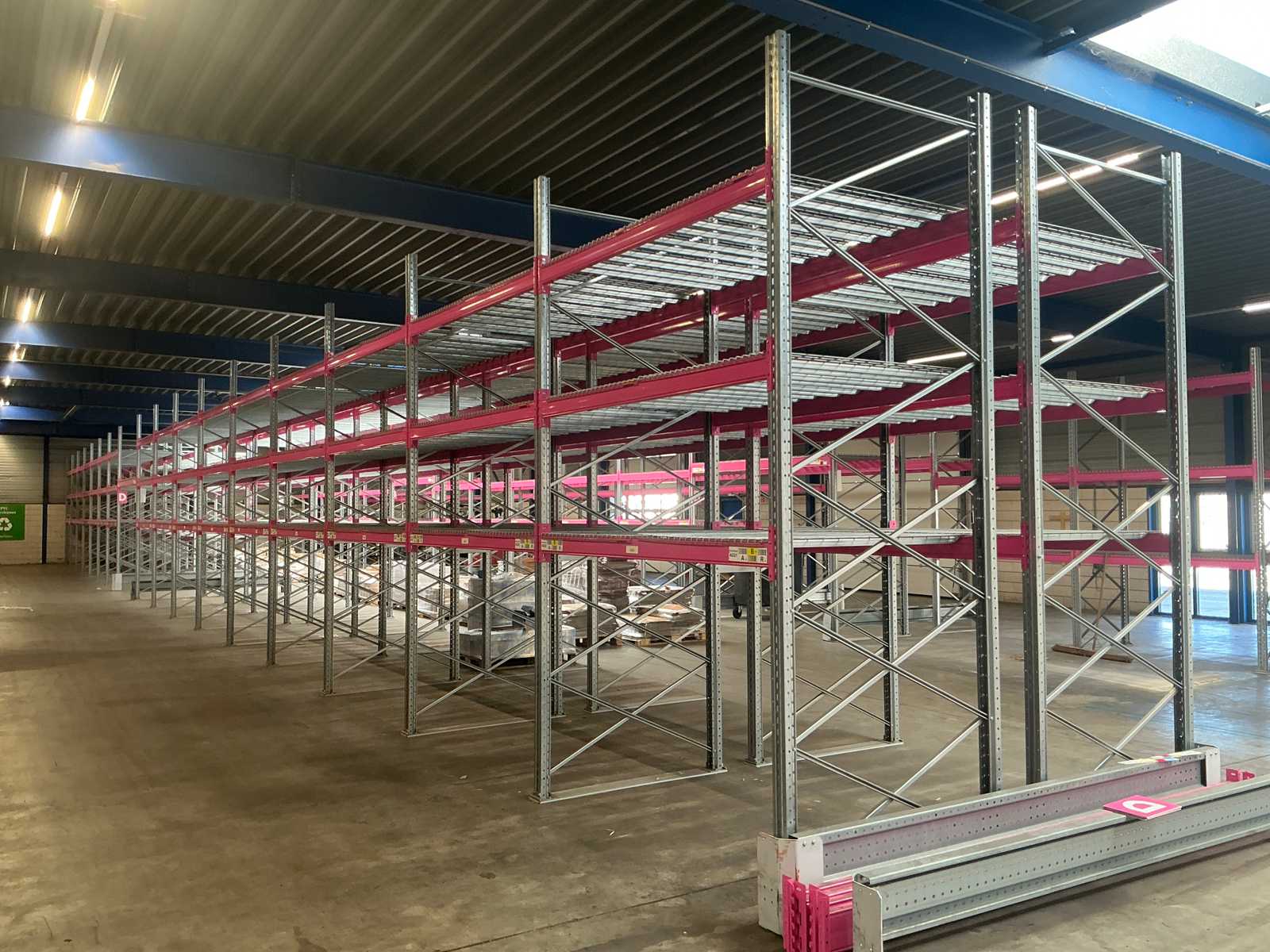 Pallet rack, Stow, height approx. 12m, 850kg / pallet, 2.70m trusses, approx. 13,470 storage spaces - used - : Price from location: only 169.500.-€ (net), dismantled, packed and loaded! Price for larger quantities: on request! Manufacturer: Stow Type: unknown, should be Pal Rack NS Year of Make: 1999 Number of frames: 458 pieces, 16 of them in depth approx. 0.94m (these are the frames with the transfer places) Frame width: approx. 12cm Frame height: approx. 12.70m, top shelf at 12m Frame struts: bolted Frame depth: approx. 1.05m Number of trusses: approx. 8,064 pieces Clear truss width: approx. 2.70m Truss height: approx. 12cm Beam distance: approx. 2.71m Height to the first beam level: approx. 1.59m Max. shelf load: 2,550kg = 850kg / pallet space Max. bay load: 19,900kg Condition: good Available: from the end of April 2026 Location: Bremen