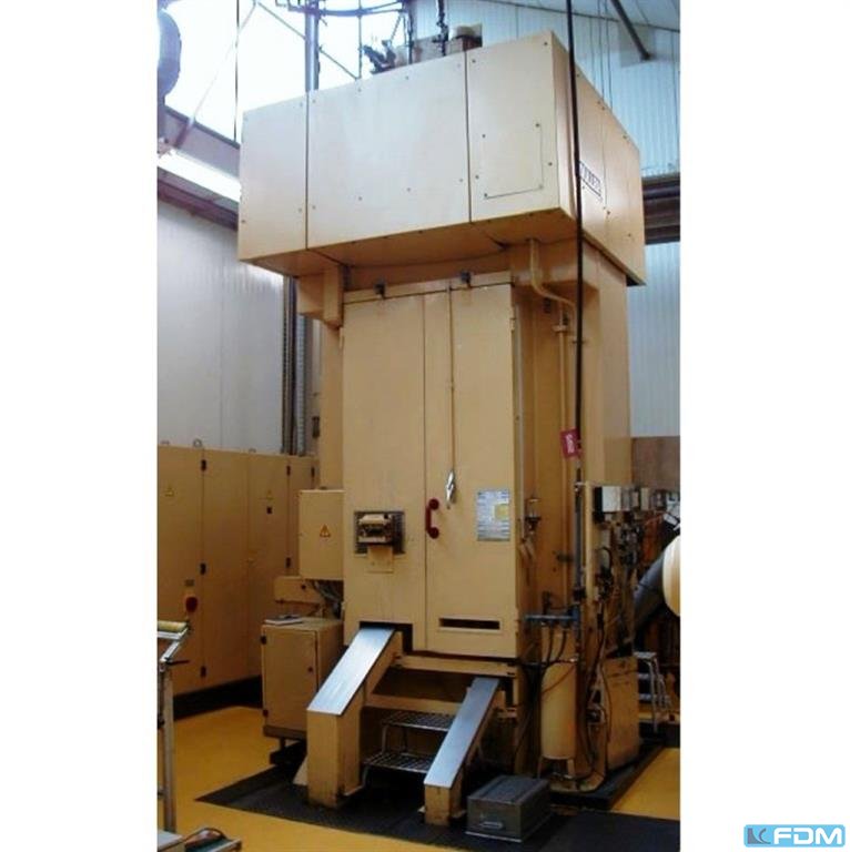 pressure:500 t distance between columns:2240 mm stroke:1180 mm distance table/ram, max. stroke up, adjustment up:1800 mm table surface area:2050 x 1800 mm pressure of drawing cushion in table:250 t stroke of drawing cushion in table:380 mm drawing cushion surface in table:1800 x 1200 mm pressure of drawing cushion in ram:122 t stroke of drawing cushion in ram:200 mm drawing cushion area in ram:1800 x 1200 mm ram surface:2215 x 1800 mm table height over floor:500 mm speed down:400 mm/s speed up:10 - 400 mm/s working speed:10 - 100 mm/s depth of the foundation:3,0 m power requirement:122 + 75 + 64,5 kW weight:110,0 t Dimensions (WxDxH):3,6 x 2,2 x 8,5 m height over floor:6,8 m German Safety: permitted for manual loading:UVV 11.064 - VBG 7n5.2 drawing cushion in table and ram:hydraulic