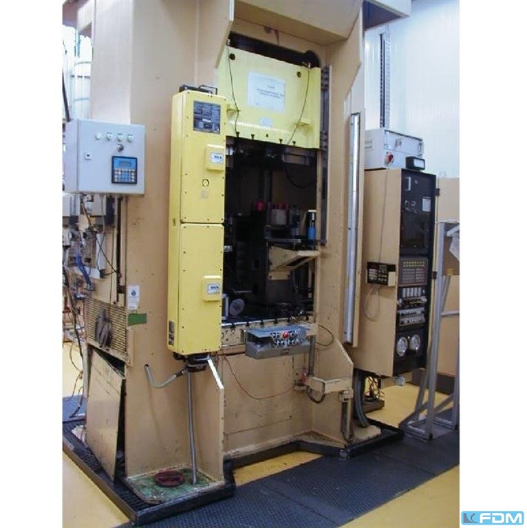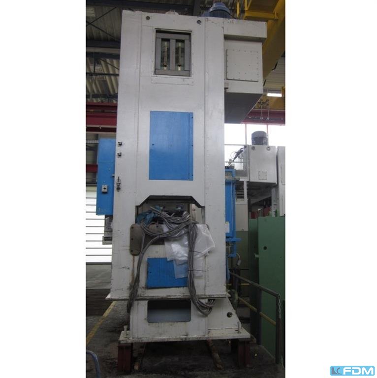 pressure:200 t distance between columns:970 mm stroke:360 mm Distance table/ram, max. stroke up, adjustment up:630 mm table surface area:1000 x 800 mm capacity of ejector:10 t ejector stroke in table:160 mm table height over floor:850 mm side window:400 mm ram surface:1000 x 800 mm speed down:420 mm/s speed up:410 mm/s working speed:50 mm/s oil volume:1240 l return capacity:24 t power requirement:45,0 + 15,0 kW weight:16,0 t dimensions (WxDxH):2,7 x 2,5 x 4,3 m German Safety: permitted for manual loading:UVV 11.064 - VBG 7n5.2 ram interlocking:mechanisch foundation pit:nicht erforderlich