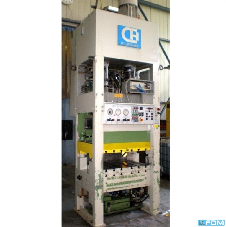 pressure:100 t distance between columns:770 mm stroke:400 mm distance table/ram, stroke up:800 mm Table area:770 x 900 mm table height above floor:850 mm die cushion pressure in table:40 t die cushion stroke in table:200 mm die cushion area in table:600 x 600 mm side window:600 mm ram surface:770 x 900 mm speed down:62 mm/s speed up:350 mm/s working speed:17,5 mm/s oil volume:700 l power requirement:42,0 kW weight:9,0 t Dimensions (WxDxH):2,6x 2,0 x 3,8 m German Safety: permitted for manual loading:UVV 11.064 - VBG 7n5.2 drawing cushion in table:hydraulic