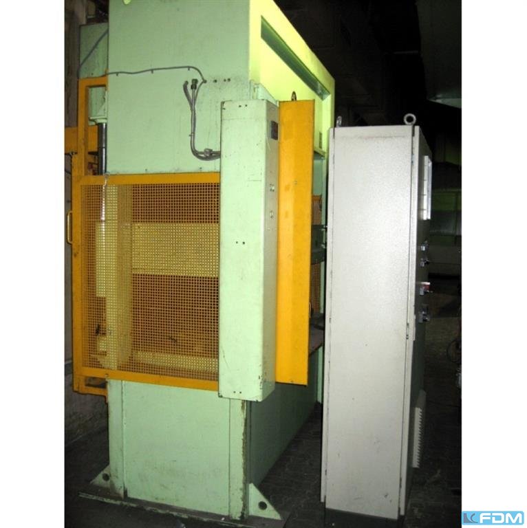pressure:160 t distance between columns:1340 mm stroke:300 mm Distance table/ram, max. stroke up, adjustment up:620 mm table surface area:1300 x 900 mm table height over floor:930 mm side window:600 mm ram surface:1300 x 900 mm speed down:367 mm/s speed up:390 mm/s working speed:58 mm/s power requirement:30,0 kW weight:15,0 t Dimensions (WxDxH):2,5 x 2,2 x 4,0 m German Safety: permitted for manual loading:UVV 11.064 - VBG 7n5.2 foundation pit:not necessary