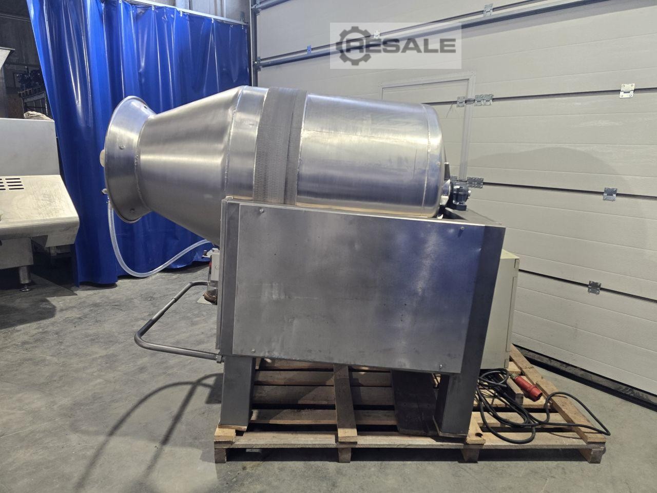 Tumbler Henneken -Capacity: 2000L -Dimensions: 2400 x 1500 x 2100 mm -Busch vacuum pump -Made of stainless steel -Condition: Used in very good condition, overhauled, ready to work
