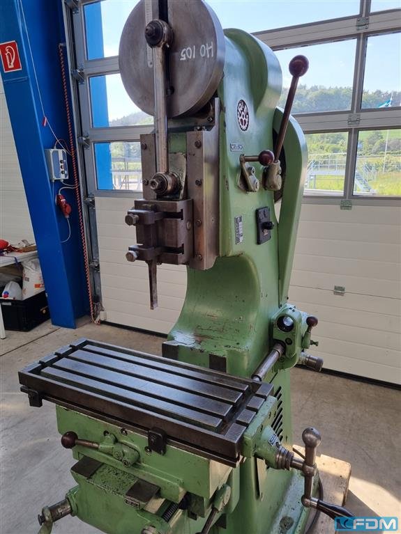 x-travel:200 mm y-travel:100 mm z-travel:100 mm total power requirement:1,5 kW weight of the machine ca.:1,1 t dimensions of the machine ca.:0,6 x 0,6 x 1,8 m table-size:350 x 150 mm New class condition milling machine with vize and dividing head - Original year of manufacture unknown