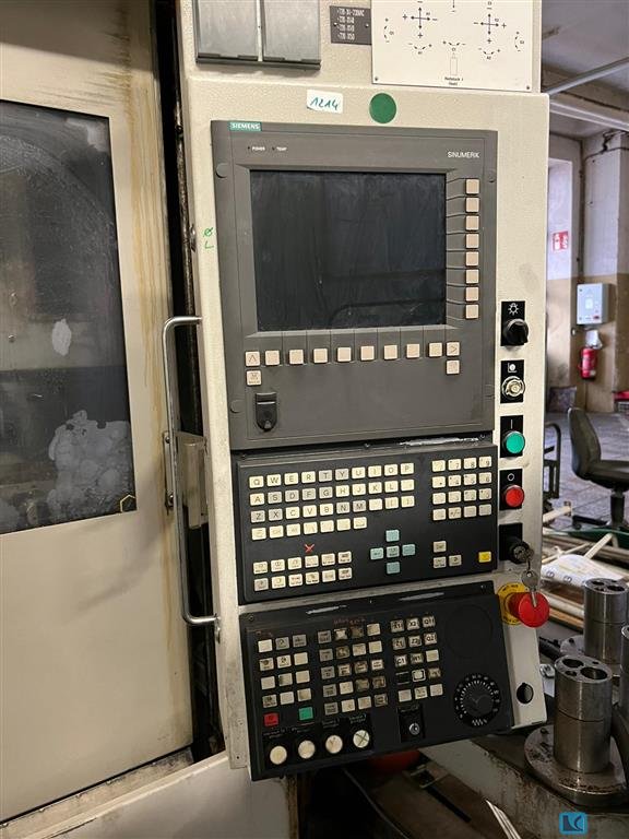 CNC controller: SIEMENS SINUMERIK 840D-ERGOLINE Capacity X-axis travel mm: 725 Y-axis travel mm: ± 50 Z-axis travel mm: 300 Turning length mm: 160 Max. turning diameter mm: ø: 250 Swing over bed mm: ø: 320 Tool magazine Magazine places: 16 Tool holder: VDI-30 Tool length max. mm: 390 Tool diameter max. mm: 140 Lower turret Number of tool slots St .: 12 Speed driven tools RPM: 4.000 Drive power driven tools kW: 11,7 Milling function: Yes Main spindle Speed spindle rpm: 5.000 Drive power spindle kW: 11,7 (40% ED) Maximun torque Nm: 280 / 360 (100% / 40% ED) Coolant system Tank capacity liter: 980 L High-pressure bar: 8 / 20 Equipment Chip conveyor CE conformity Coolant gun Air blast / coolant switch-over Internal coolant supply Paper band filter Automatic workpiece magazine loader - 16 positions x ø 220 Working time hours ...