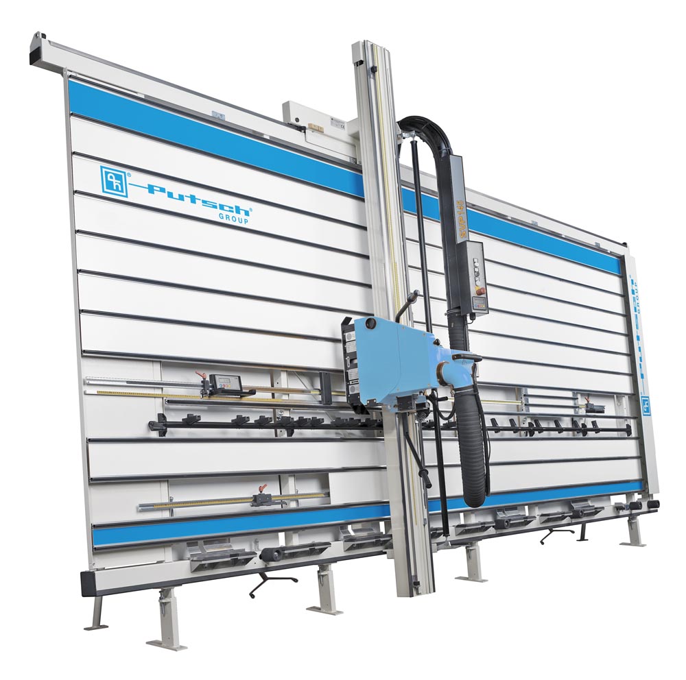 Vertical panel-sizing saw Brand: Putsch Type: SVP 145 M New machine Description: The SVP 145 M is a vertical panel saw for cutting panels in vertical and horizontal direction. The frame of the saw is completely welded and has a support grid for the workpieces to be processed, consisting of aluminium strips and plastic inserts. The automatic grid displacement ensures that the saw blade does not hit the support bars during horizontal cuts. The lower workpiece supports consist of aluminium soles and plastic inserts. For the easy movement of the workpieces, the machine is equipped with retractable transport rollers. The saw beam and the saw carriage can be moved and adjusted by hand, the saw beam can be fixed in 5 vertical sawing positions for this purpose. The comfortable insertion and removal of the saw head is ensured by an ergonomically shaped handle. Standard equipment: - El ...