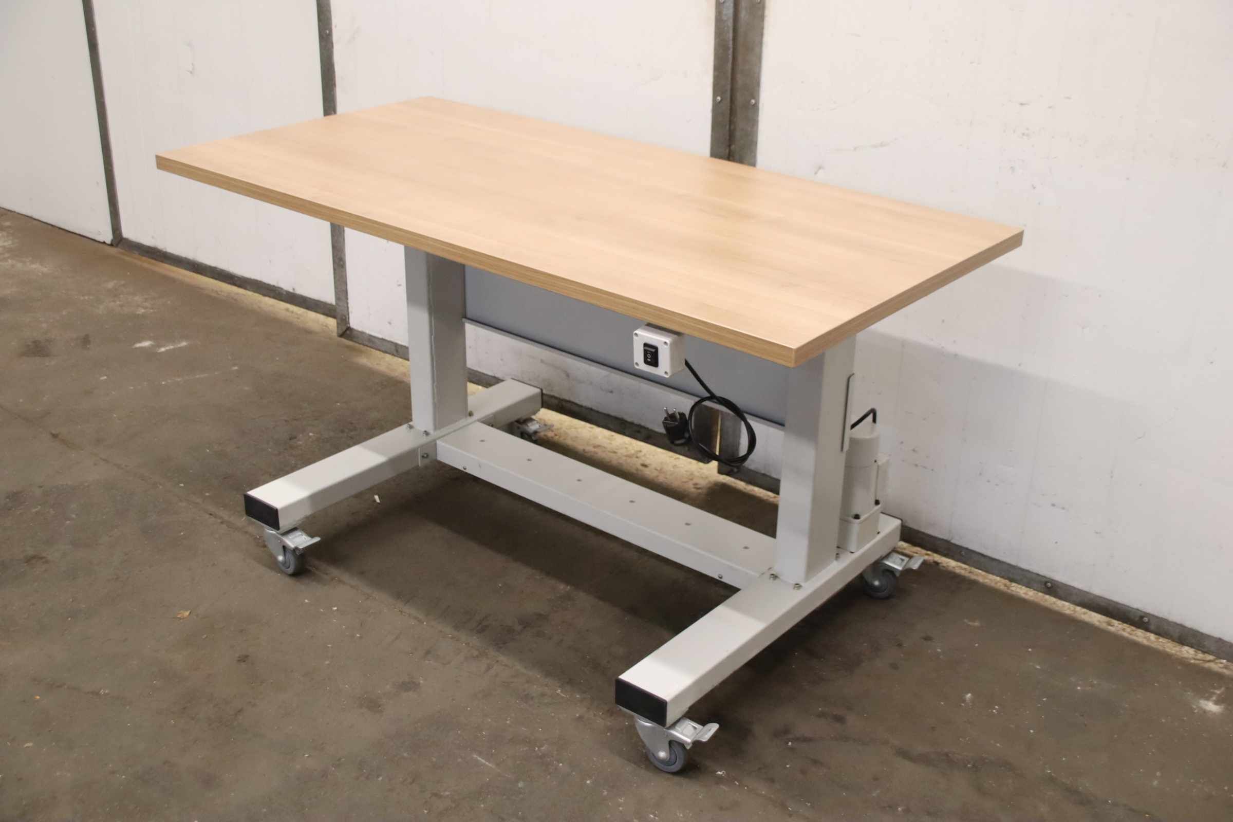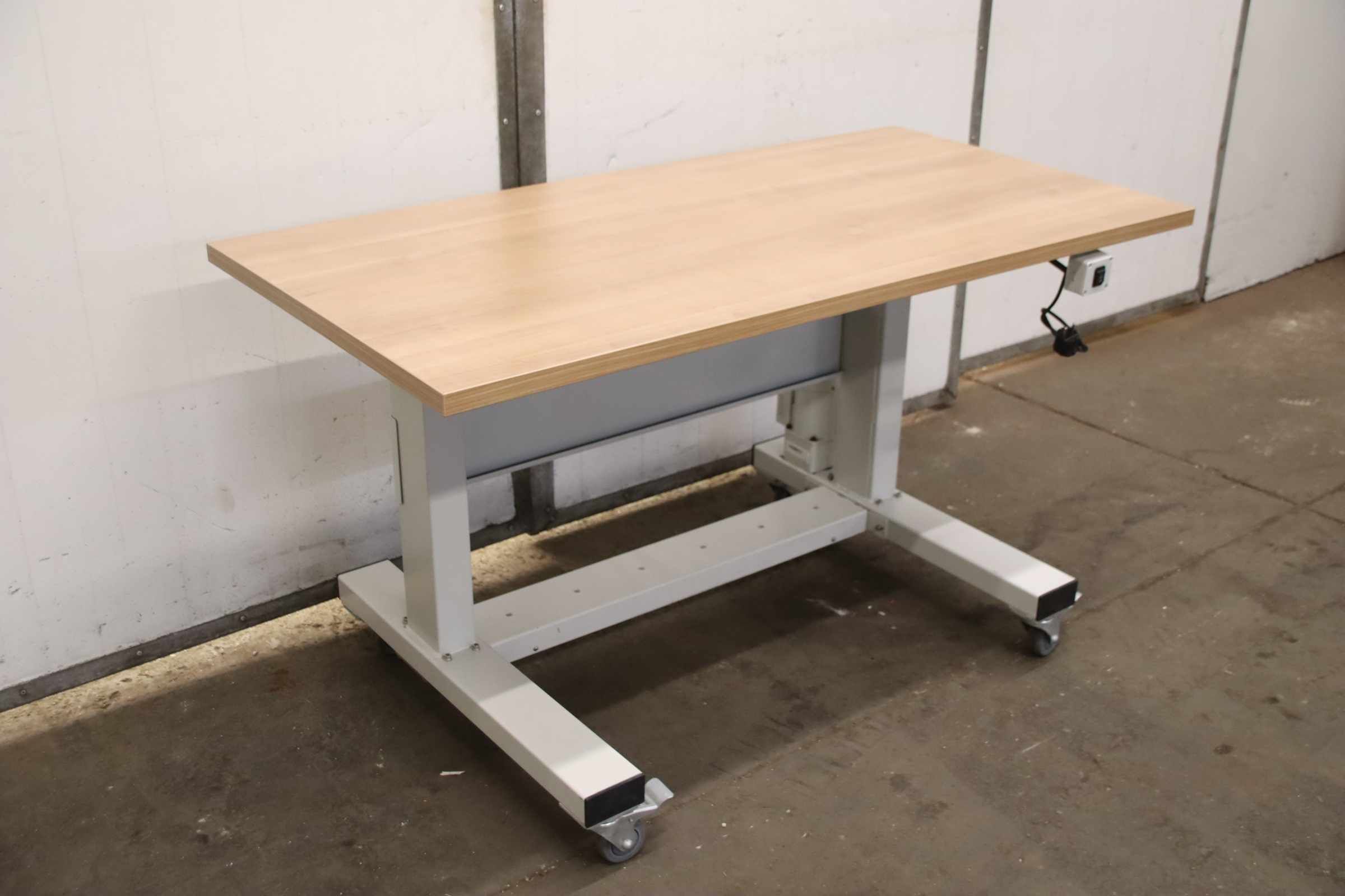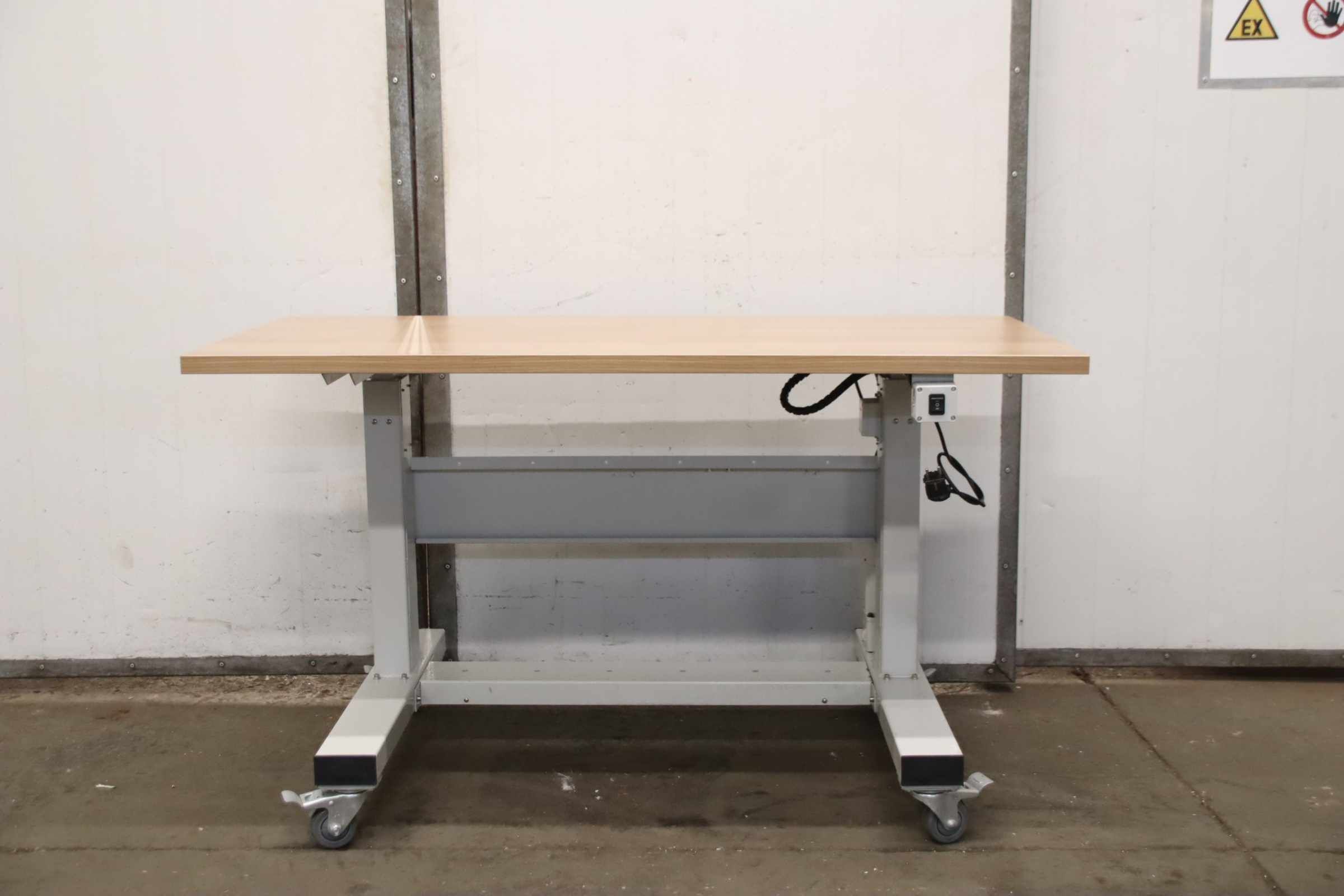 Workbench, work table, assembly bench, assembly table, worktable, mobile workbench, sewing machine table -Work table: Electrically height-adjustable work table, solid construction with casters -Tabletop: 1400 x 700 mm -Height: 810 to 1180 mm -Drive motor: Baifu 51K120GU-CM-P 230V 120W -Base: 4 swivel casters with locking brakes -Transport dimensions: 1400/700/H810 mm -Weight: 62 kg