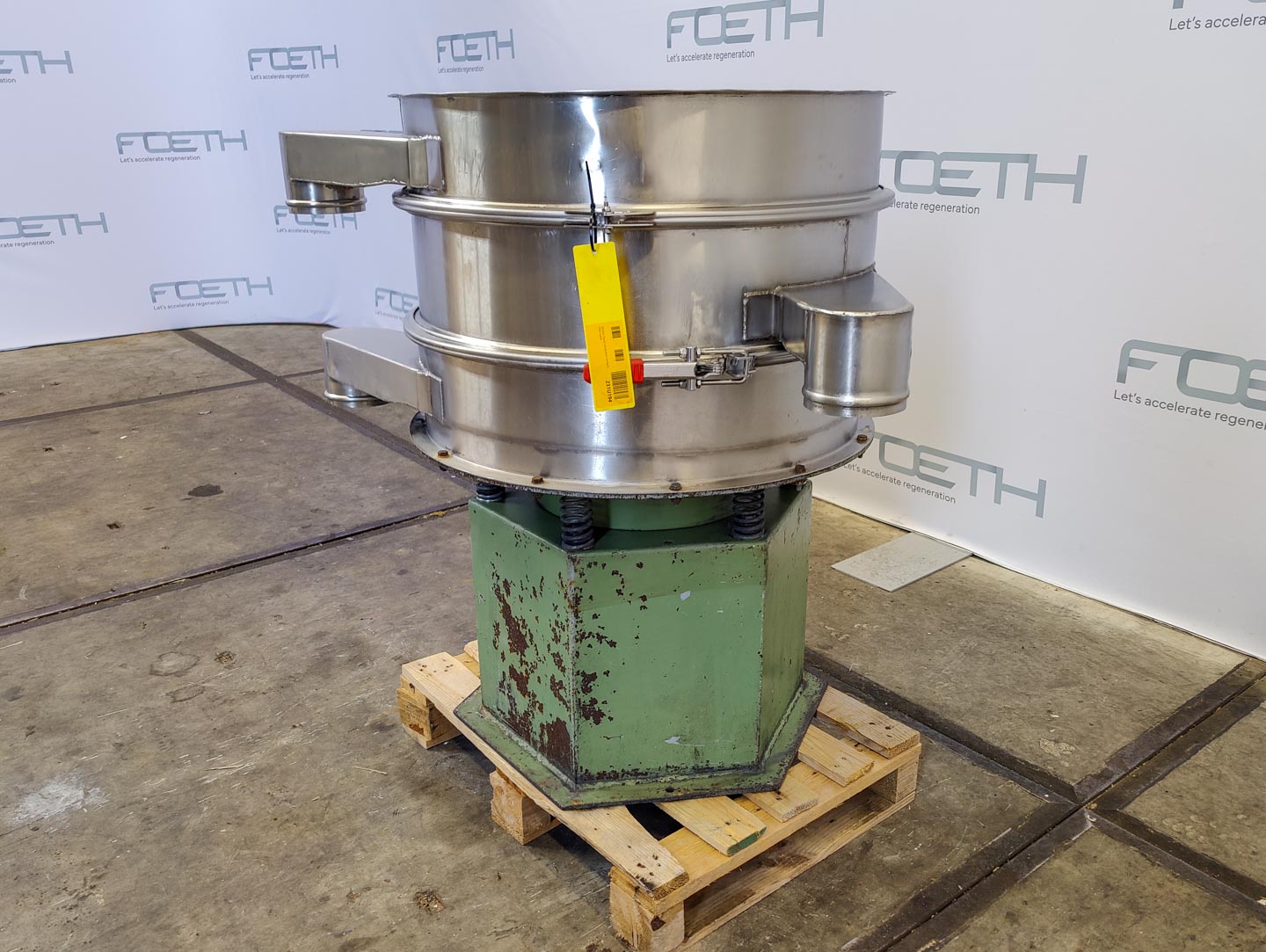 General SKU326X671 LocationBarneveld MakeAllgaier TypeD-950/2 Main Features MaterialStainless steel Surface0.7 m2 Sizes diameter950 mm Specified Features - Vibro sieve Vibro sievecheck Sieve surface1,4 m2 (2 x 0,7 m2) Number of sieve decks:2 (3000 µm and 560 µm) Sieve sizesDia. 950 mm With covercheck InletDia. 210 mm OutletDia. 200 mm Drive vibro motorcheck Motor2x 0,5 kW, 220/380 volt, 980 rpm Sieve perforation0,4 mm With ball cleaningcheck With extra sieve decks4 (1000 µm, 560 µm and 315µm) and extra ball deck MaterialStainless steel 1.4305 (303) Information No.573 Year of construction1990 Without framecheck Floor space1,4 x 1,4 m Total height1,0 m Weight350 kgVibro sievesAllgaierSieves > Vibro sievesBrand > Allgaier What you can expect from Foeth: -- Machine is in working condition -- At a reduced price compared to new -- Ready for shipping to any de ...