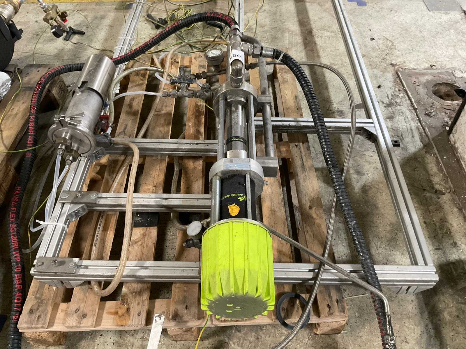 Function: A high-pressure piston dosing pump or testing/conveying system for liquids, with pressure gauge (pressure gauges) and rack Auction-ID: A1-45447-56
