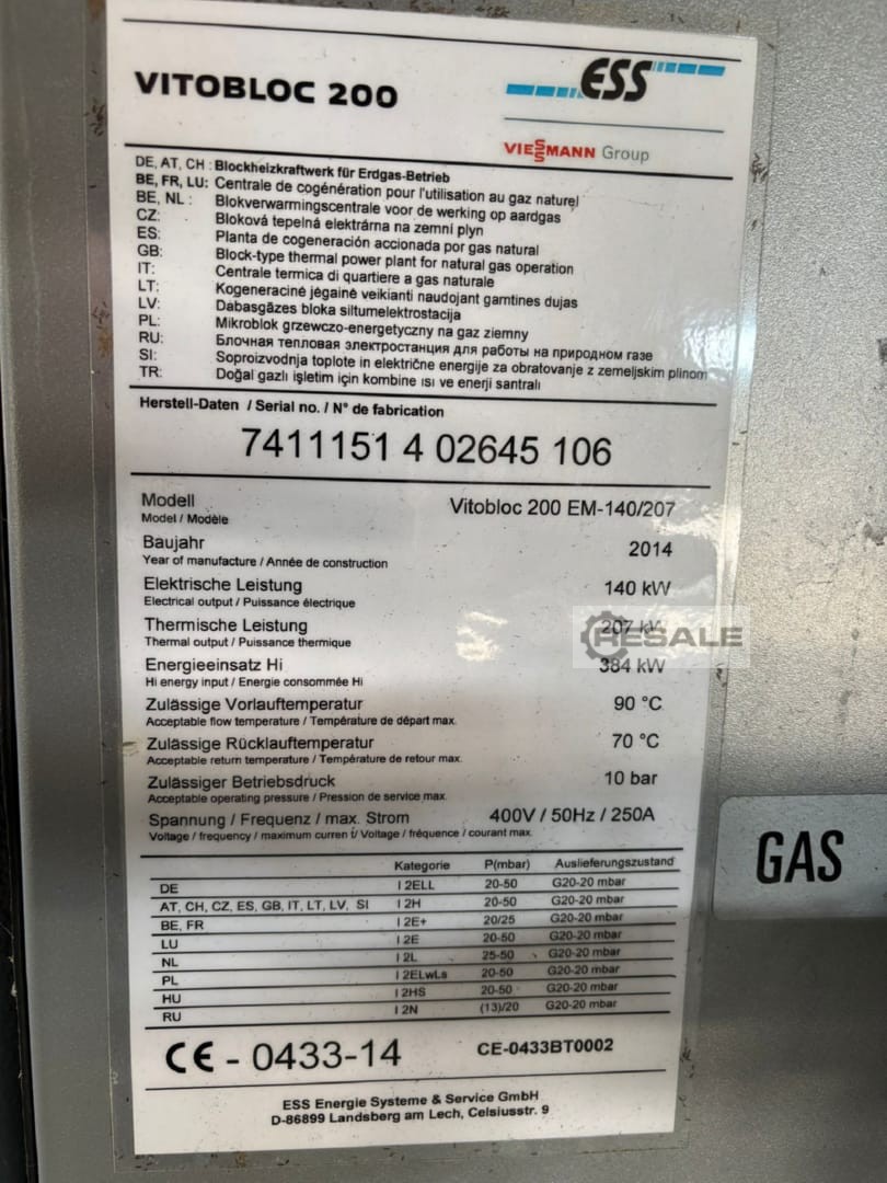 | 2012 | VIESSMANN | Vitobloc 200 EM-50/81 | 6900 EUR | [Jul 2024] |