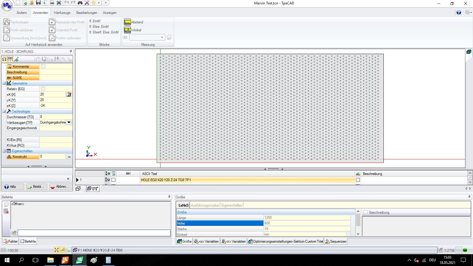 - Min panel size: X 400 mm, Y 300 mm, Z 12 mm