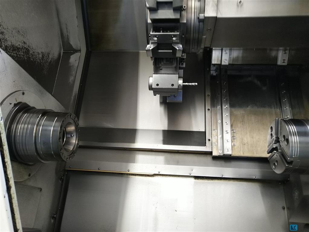 turning diameter:325 mm turning length:600 mm total power requirement:35 kW spindle drive:25 kW spindle turning speed range:5000 U/min speeds of tool:4500 U/min rapid traverse X-axis:60 m/min diverse toolholders:VDI 40 rapid traverse Z-axis:45 m/min weight of the machine ca.:6,5 t dimensions of the machine ca.:3,5 x 2,5 x 2,1 m Machine with SIEMENS 840 D control power line with shopturn - C and Y-axis, driven tools - bar loader IRCO ILS-RBK - coolant device with coolant throough revolving head - Revolver - counter spindle - chip conveyor - collet clamping - part catcher