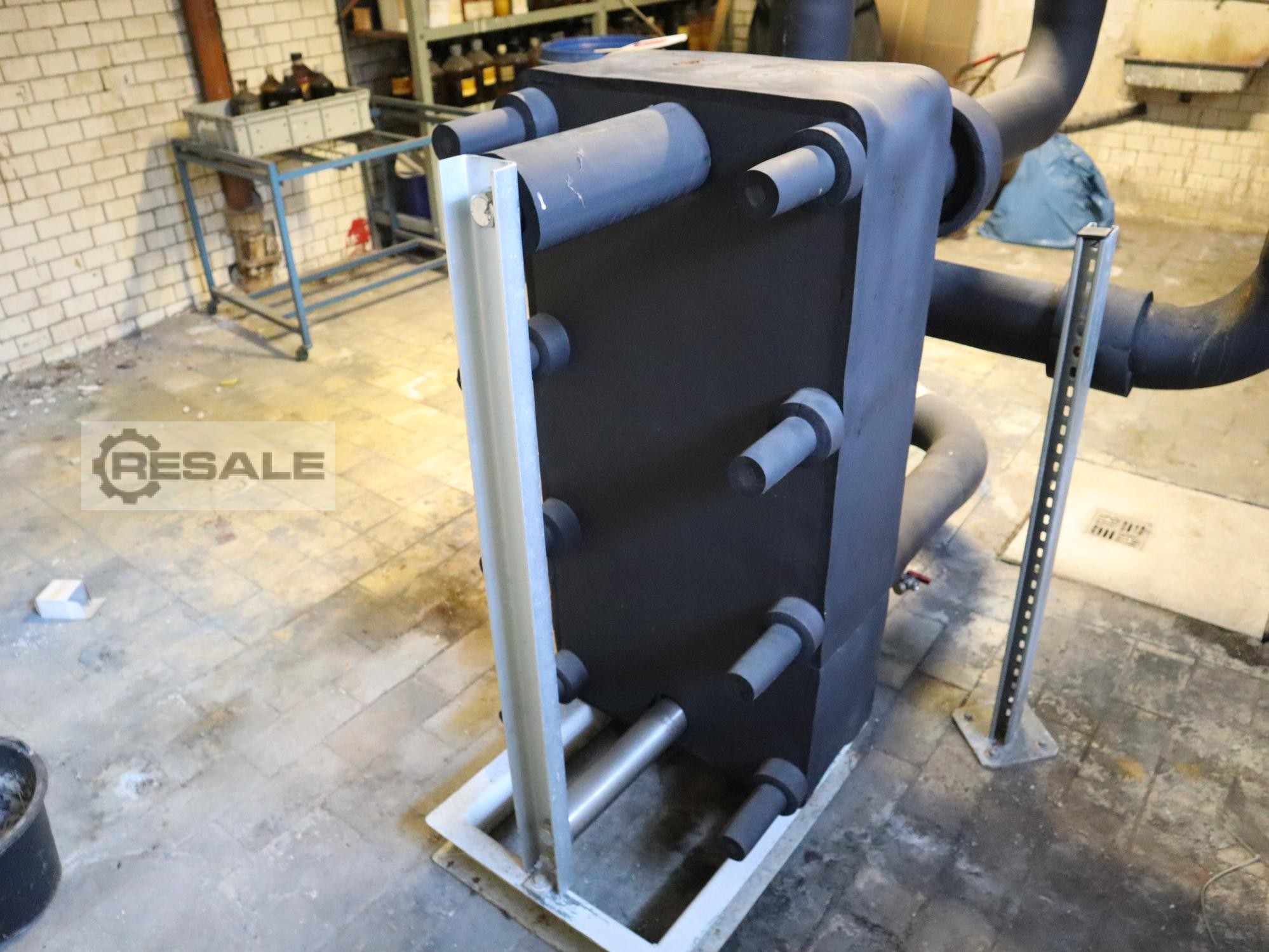 Plate heat exchangers; isolated; on rack; width 50 cm, height 1.10 m, depth 20 cm, for an extra charge also with partial piping and 3 gate valves Loading FREE Truck