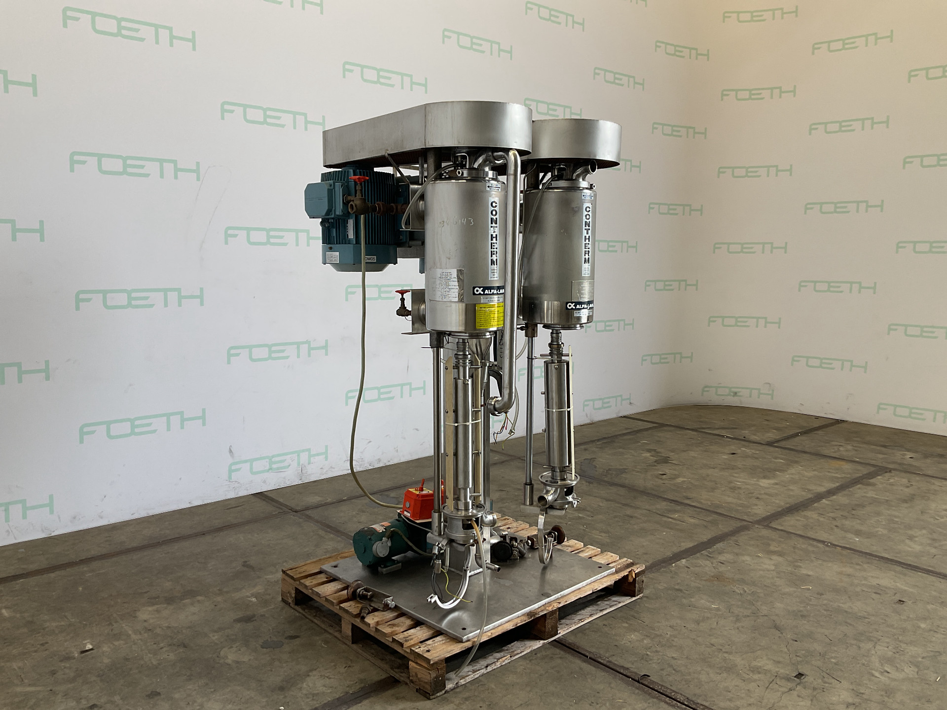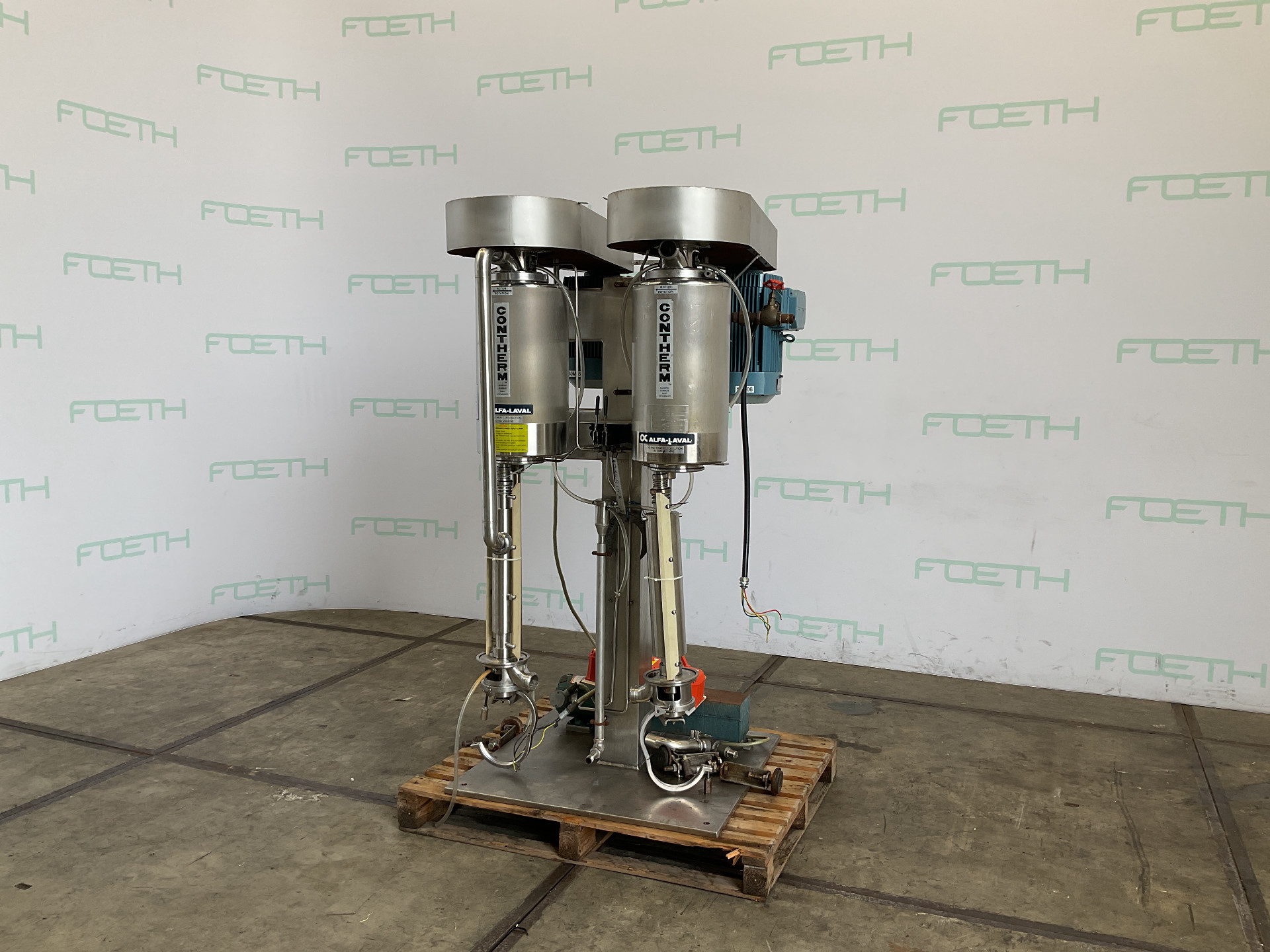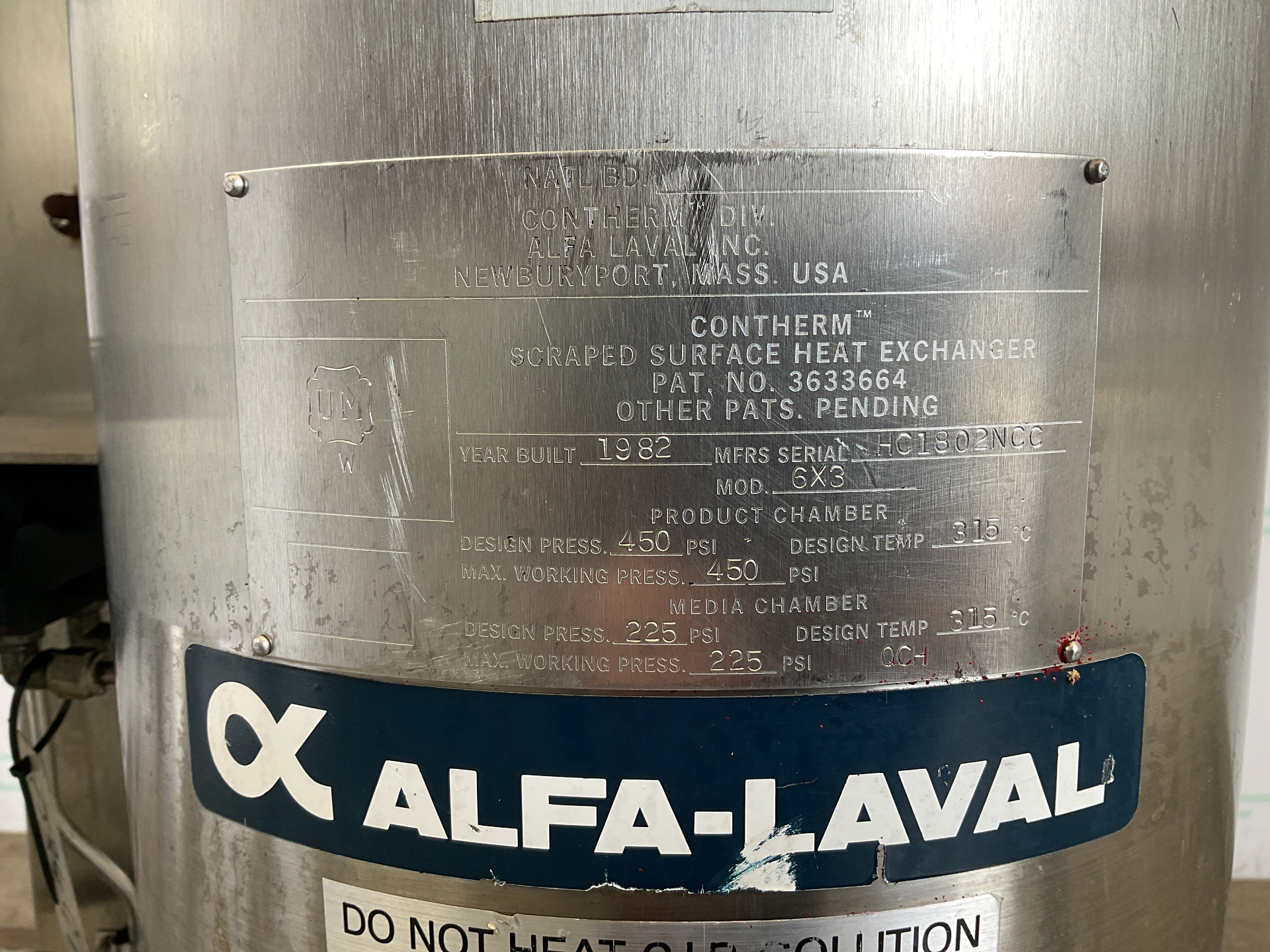 General SKU020A140 MakeAlfa Laval TypeContherm 6x4 No.HC-288 Year of constructionunknown Mounted on framecheck Main Features MaterialStainless steel Motor4 KW Surface0.4 m2 Specified Features - Scraped surface heat exchanger MaterialStainless steel Scraped surface heat exchanger(1x) Heating surface0,37 M2 (4 Square Feet) Cylinder sizesdia. 152mm (6 Inch) With jacketcheck Motor4,0 KW, 380 Volt With variable speed drivecheck Information LocationBarneveld Floorspace1,2x0,9 M Total height1,8 M Technical specs Extra informationcylinder size: 152 mmDiscountScraped surface heat exchangersAlfa LavalDiscountHeat exchangers > Scraped surface heat exchangersBrand > Alfa Laval What you can expect from Foeth: -- Machine is in working condition -- At a reduced price compared to new -- Ready for shipping to any destination worldwide -- You are welcome to inspect the machine in ...