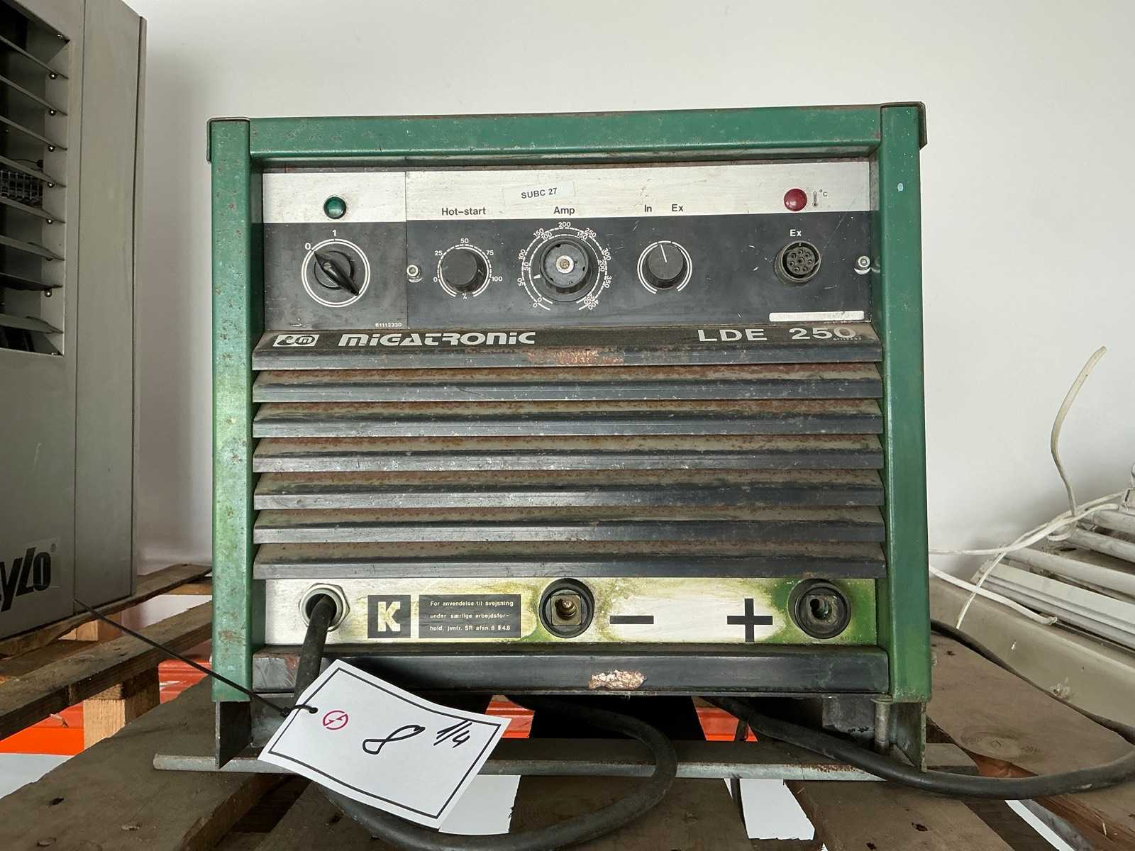 TIG Welding Machine, Electric Welding Machine KESTRA Type TIG 350 AC/DCE Welding MachineFabr. No. 09720693 Year of construction approx. 1985Power 350 Amp. = 60 % EDExsetting range 3 steps and fine adjustmentCurrent type AC / DCNet connection 400 volts, 50 Hz, 32 Amp. Plug- 4 meter hose package with TIG torch- 2 stroke / 4 stroke welding device- Water-cooled- Gas pressure reducing valveSpace requirement L x W x H 1050 x 560 x 900 mmWeight 250 kgThe welding test gives good results when welding stainless steel with