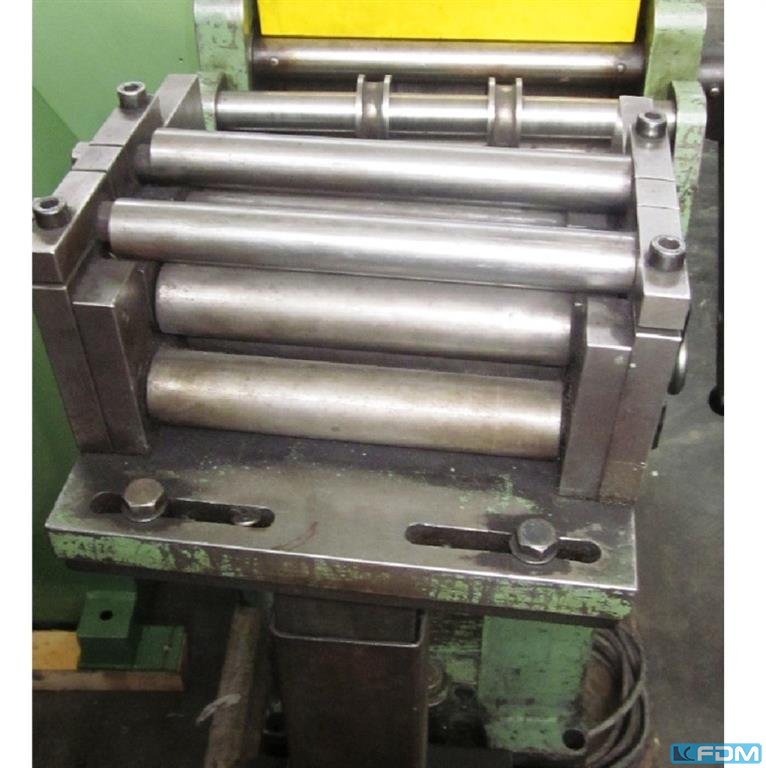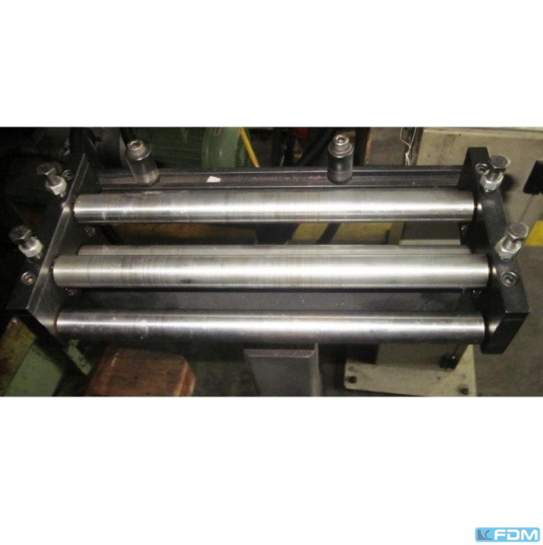 material width:450 mm material thickness:0,5 - 1,0 mm no. of straightening rolls:6 straightening roll diameter:53 mm number of draw-in rolls:2 diameter of draw-in rolls:96 mm power requirement:1,0 kW weight:0,65 t dimensions (WxDxH):1,0 x 1,0 x 1,55 m