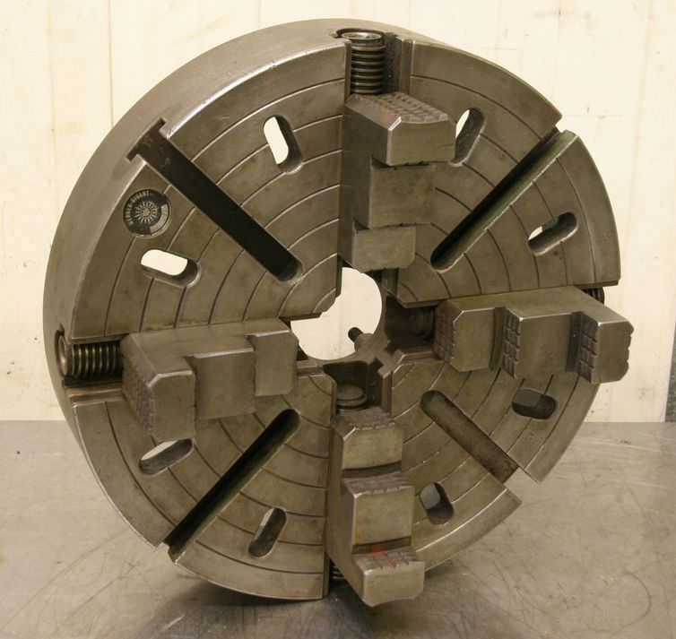 Face plate, face plate chuck, four-jaw chuck, facing chuck -Chuck size: Ø 450 mm -Flange: Ø 172 mm -Hole circle: Ø 135 mm -Through hole: Ø 80 mm -Weight: 80 kg