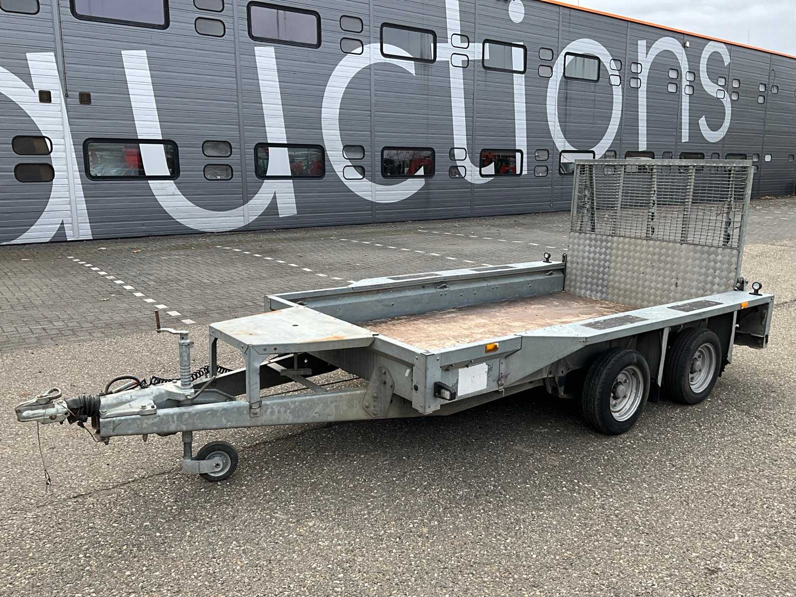 Ifor Williams TT35 tipper (3500 kg), double axle, electric hydraulic tipping system with remote control. Including road plates (±3 tons), new battery, new clutch and jockey wheel. Year of manufacture 2019, Belgian papers available. Ideal for transporting machines and building materials. Working and immediately usable - small dent at the back of the loading platform (see photo) - Loading container dimensions: approx. 360 x 190 cm Auction-ID: A3-43367-10797