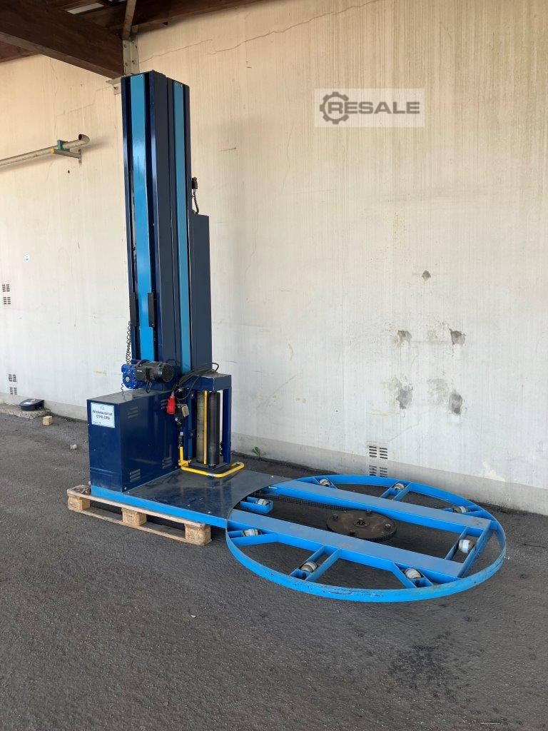 A semi-automatic mobile stretch wrapping machine is available. Pallet dimensions X/Y min.: 600mm/600mm, max. packaging output: 65m/min, wrapping height: 2000mm, max. film carriage speed: 5.4m/min, total output: 0.55kW, output: 35 pallets/h. The battery is defective. Documentation available. On-site inspection is possible.