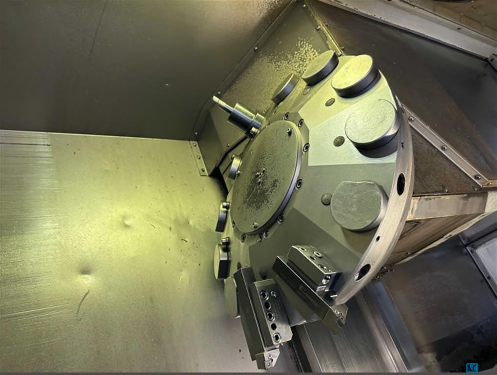 For sale: Gildemeister CNC lathe type Sprint 65 Linear equipped with a Fanuc 310I control. This CNC lathe is equipped with 2 equal spindles with a bar passage of 65 mm. The machine also has three turrets with 12 positions where you can place driven holders in any position! The upper turret is equipped with a Y-axis with a displacement of 80 mm ( (+50, - 30 mm). The turning diameter is 205 mm. The maximum turning length is 650 mm. The movement X1, X2, X3 is 165mm, the Z1 axis movement is 220mm, the Z2 axis movement is 150mm, and the Z3 axis movement is 768mm. The W2 axis movement is 690 mm and the maximum rapid traverses are 30 meters/min. The maximum speed of both spindles is a speed of 5,000 rpm and both spindles have a full C-axis. The tool holder holder on all turrets is VDI-30. The machine is also equipped with a hinged belt chip conveyor with right ejection and the machine has an Ir ...