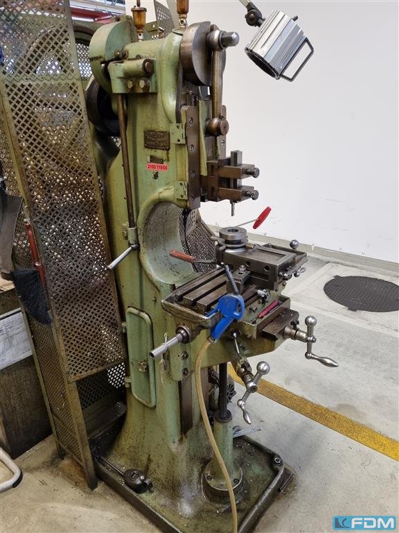 bore capacity in steel (diameter):10 mm throat:210 mm bore stroke:80 mm total power requirement:1,1 kW weight of the machine ca.:195 kg dimensions of the machine ca.:530 x 650 x 1850 mm spindle speeds::355, 710, 1400, 2800 U/min Table dimensions:340 x 280 mm