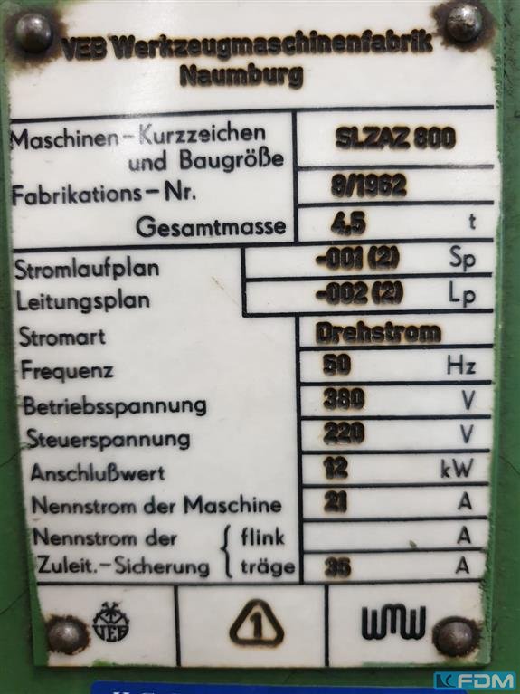 VEB Heavy-Duty Industrial Lathe Type: Heavy-duty industrial lathe Manufacturer: VEB Großdrehmaschinenbau \"8. Mai\" (Germany) Year of manufacture: 1993 Distance between centers: 4000 mm Swing over bed: approx. 800 mm Swing over carriage: approx. 500 mm Spindle bore: approx. 80 mm Power supply: 3-phase, 380 V, 60 Hz Control voltage: 220 V Installed power: 13.5 kW Rated current: 28 A Functionality not tested This item is delivered loaded on truck. Dismantling and loading costs are specified as additional costs. Auction-ID: A1-45225-23