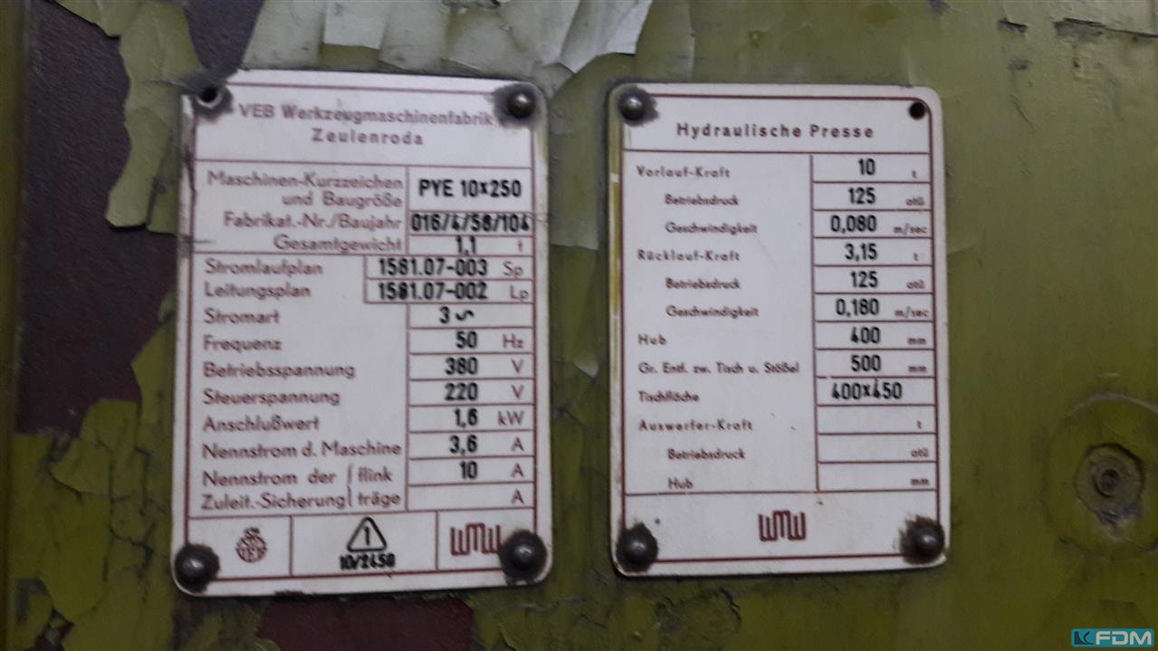 pressure:10 t stroke:400 mm total power requirement:1,6 kW weight of the machine ca.:1,1 t dimensions of the machine ca.:1100 x650 x 2050 mm dayligth:500 mm table-size:400 x 450 mm Documents:vorhanden